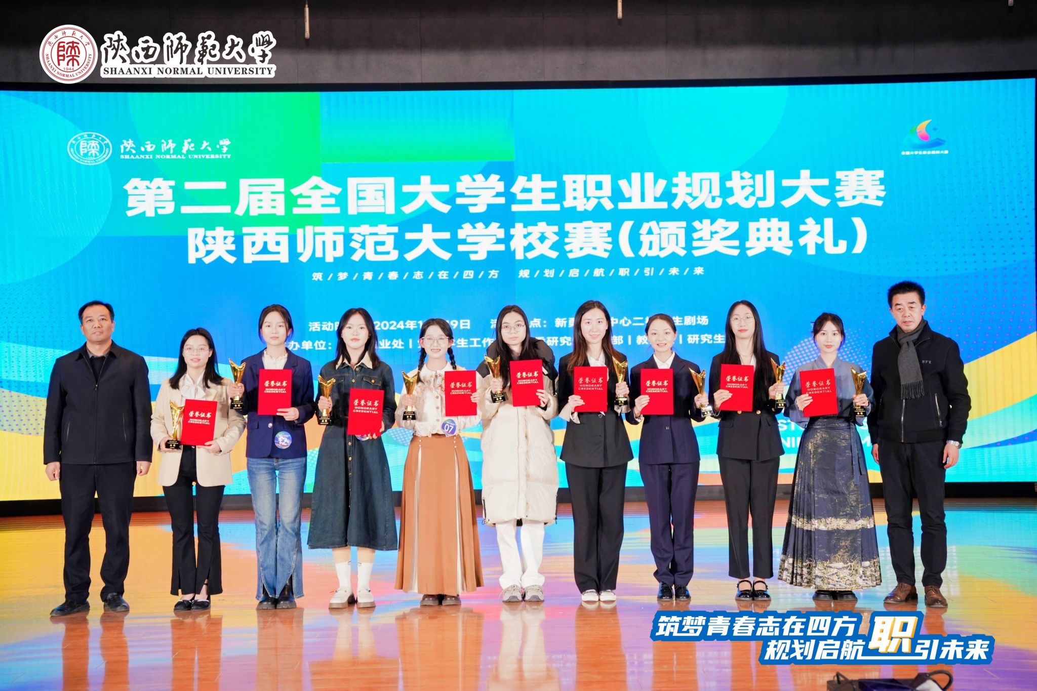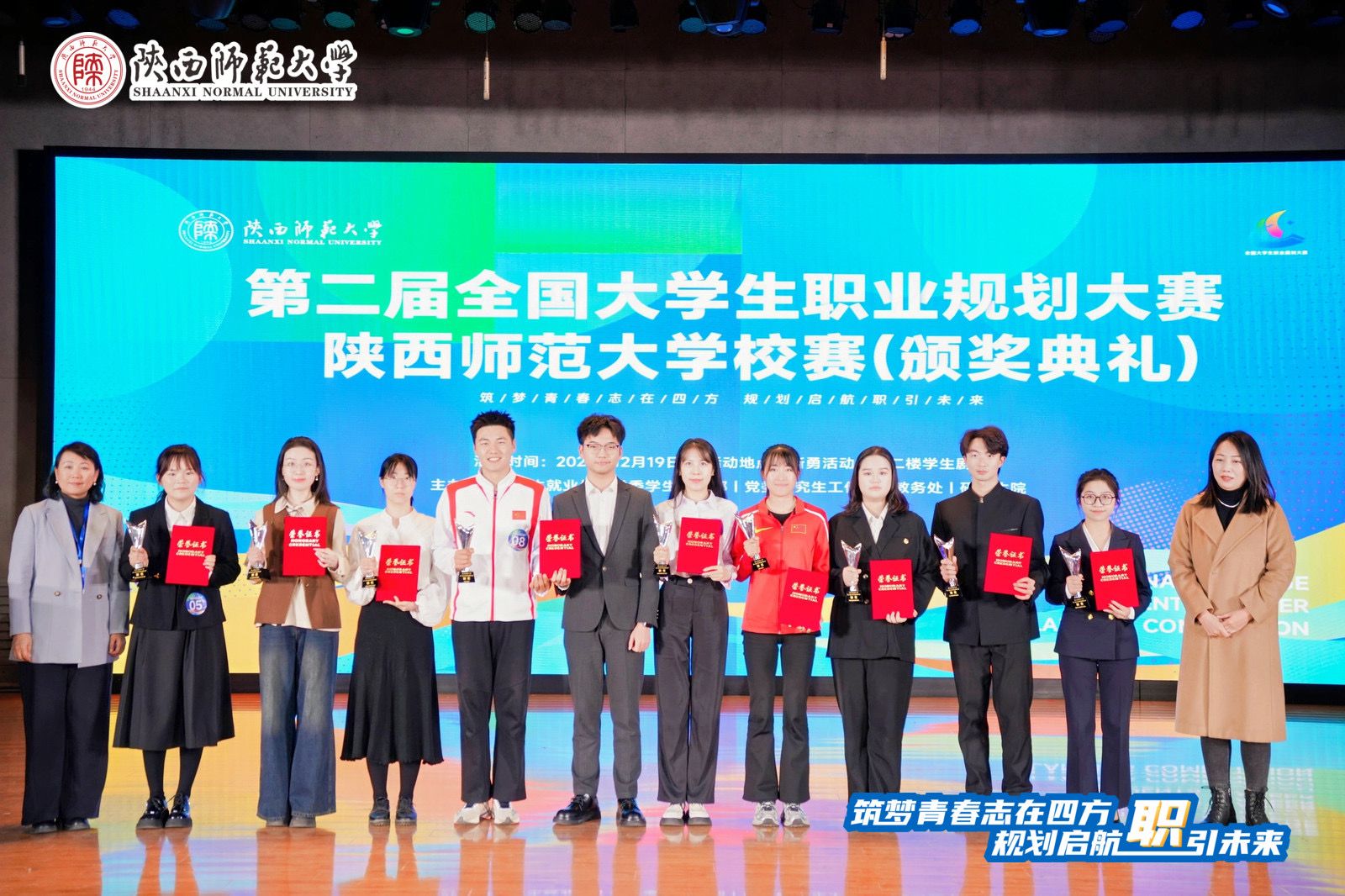 12月19日,陕西师范大学第二届大学生职业规划大赛决赛暨颁奖典礼在长安校区新勇学生活动中心举行。英国365集团公司2021级本科生金新宸、田雨欣分别获就业赛道本科生组金奖、银奖,2023级硕士研究生王媛获就业赛道研究生组银奖,2022级本科生朱欣悦获成长赛道铜奖,辅导员邓文珺获“优秀指导教师”荣誉称号,学院获“优秀组织单位”荣誉称号。