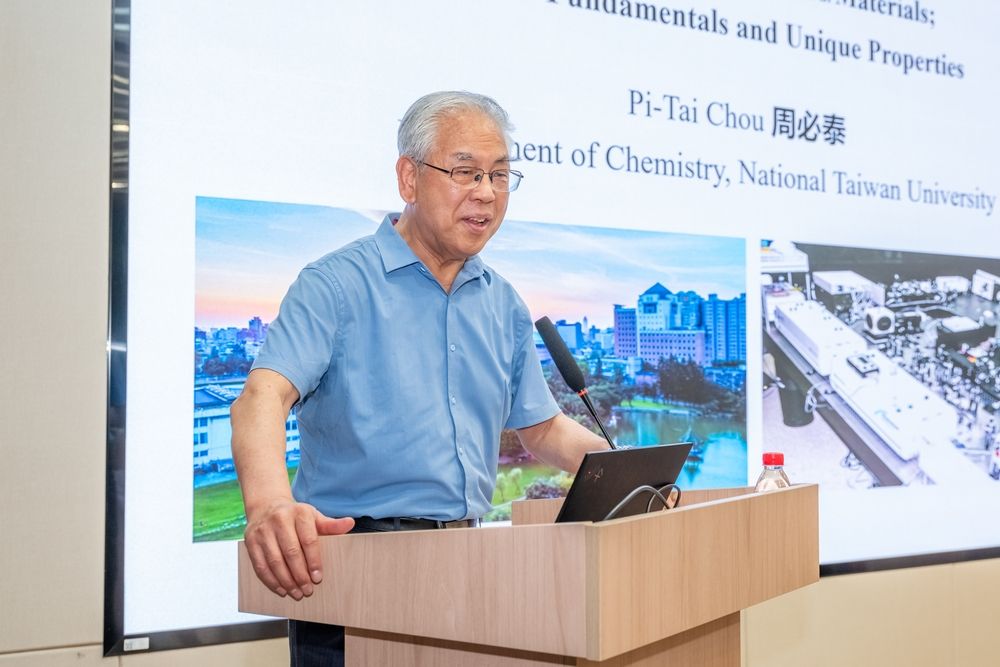 周必泰教授的报告聚焦分子设计理论和光谱技术等在发光材料和能源中的应用,阐释了“能隙定律”,从理论和实验两方面证明了激子离域、氘同位素和分子自组装低频相干运动的结合对内部重组能的抑制创新策略。这一突破跨越了能隙定律限制,开辟了通过分子内激子离域来追求近红外线有机发射体的新领域。