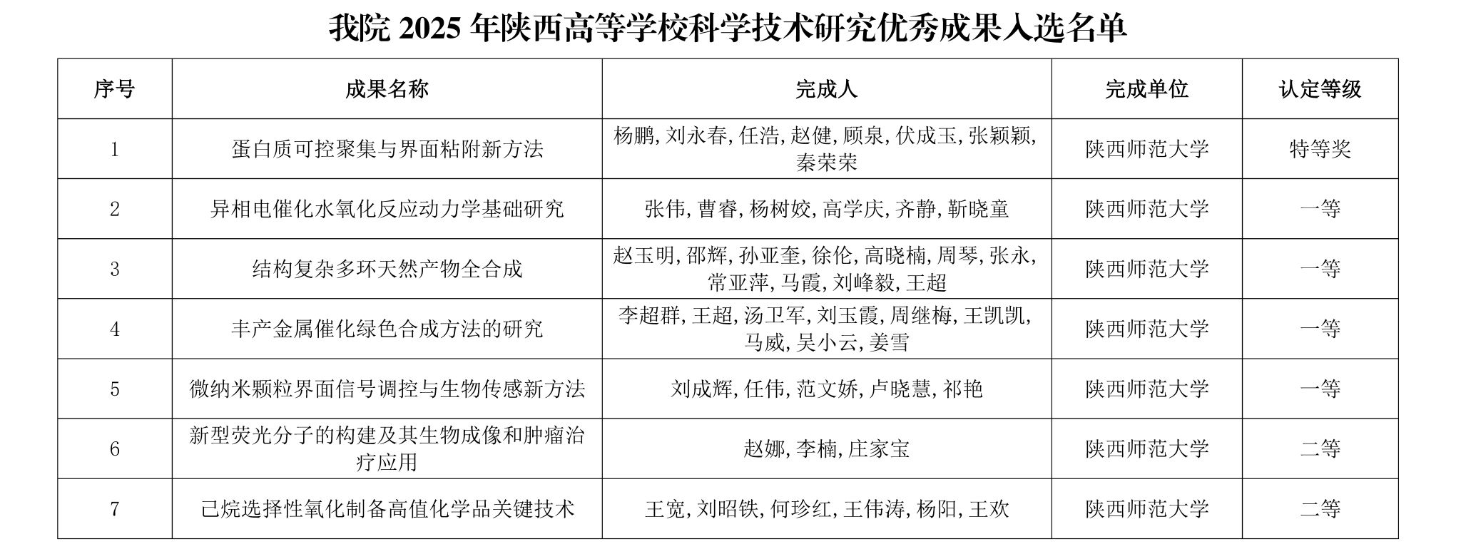 此外,近日,陕西省教育厅公布了《2025年陕西高等学校科学技术研究优秀成果名单》,英国365集团公司7项成果入选,其中特等奖1项,一等奖4项,二等奖2项。
