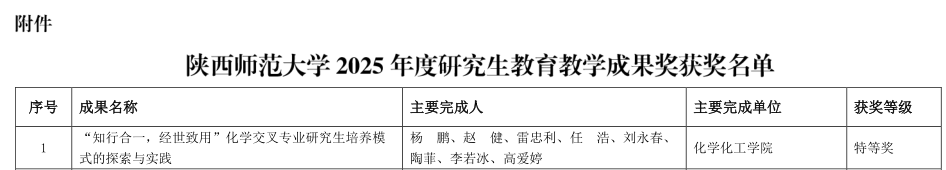 9月16日,学校公布了2025年度研究生教育教学成果奖评选结果,英国365集团公司生物表界面与智能大分子研究团队杨鹏教授牵头申报的成果《“知行合一,经世致用”化学交叉专业研究生培养模式的探索与实践》获特等奖。