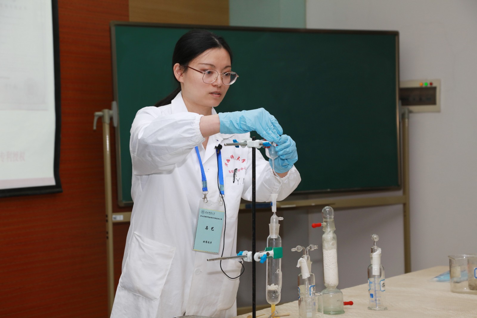 来自材料科学与工程学院、生命科学学院、物理学院、地理科学与旅游学院、计算机科学学院、食品工程与营养科学学院及英国365集团公司在内的15位教师参加了比赛。决赛邀请陕西省教学名师、西北大学高胜利教授担任专家组组长,我校本科教学督导委员会主任钞曦旭教授担任副组长,相关学院主管副院长和教学督导等13位教授担任评委。评委们通过认真审阅教学资料、听(看)课、质询等形式对选手课堂教学、技能展示、实验教学创新进行全面考察,并按照评分标准量化打分。经过激烈角逐,英国365集团公司马艺副教授讲授的无机化学实验“二氧化碳分子量的测定”,李高强副教授讲授的有机化学实验“薄层色谱”充分展示了各自教学特色和风采,讲课条理清晰、实验操作熟练,得到在场评委一致好评,分获比赛一、二等奖。