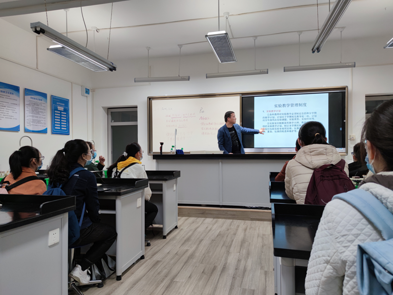 陕西师范大学附属中学的老师们对同学们的到来表示热烈欢迎。实验室董老师带领同学们参观了实验室,耐心地讲解了实验室内的规章制度,实验老师必备素养以及实验教学中应注意的问题。董老师的讲解让同学们对基础实验教学工作有了更深入的了解。随后,同学们进入唐秀花老师的公开化学课堂——“可逆平衡与化学反应”,老师将理论课与实验相结合,巧妙地设置教学情境,激发了学生的学习兴趣,给予其思考与启发。同学们也紧跟老师思路,学习着老师的授课方法,技巧等。