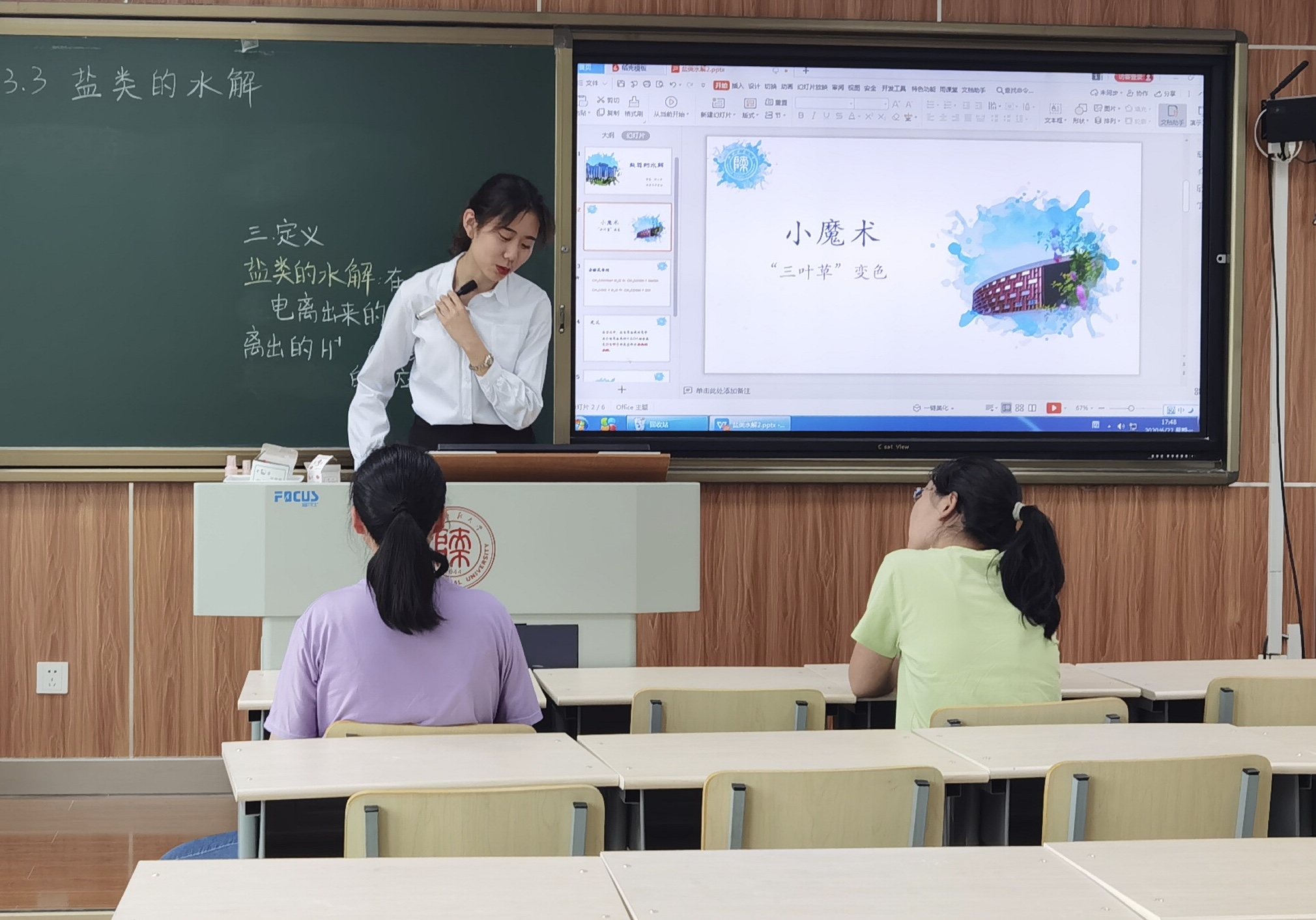 第十一届“红烛杯”公费师范生教育教学能力大赛历时1个多月,经历了学院初赛、学校复赛和决赛三个阶段。决赛正值高考期间,且受到疫情影响,故本次比赛全部采用线上钉钉会议视频的形式进行。大赛分为两场进行,包含书写测试、教学设计、即席演讲、模拟授课、说课和评委点评六个环节,全面考察选手的知识积累、创新设计以及临场应变等能力。书写测试测试中英国365集团公司参赛选手李聪聪、李越、孙小溪、任泉先、余昕海、刘界良均取得了优异的成绩,其中李聪聪获得理科组书写测试第一名、全校第二名。在模拟授课和即席演讲中英国365集团公司选手亦有出色表现。在准备时间只有150分钟的情况下,选手们完成了教学设计、即席演讲准备、模拟授课准备以及说课稿撰写,通过《氯水成分的探究》、《乙醇的分子结构与部分化学性质》、《原电池的构成条件》等课程的讲授得到了评委的认可。