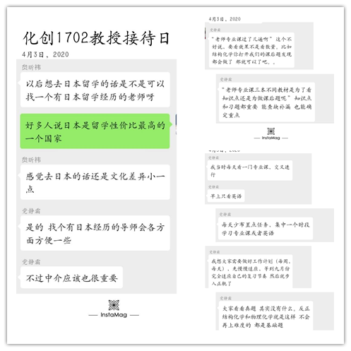 4月3日化学(创新实验)1702班邀请了党静霜老师参加“教授接待日”活动,本次活动以线上文本会议形式进行,师生主要围绕考研复习备考过程进行了交流。针对同学们想了解的考研选择学校、专业课复习方法、复习过程中调整心态的方法等问题,党老师结合自己的考研经历和专业背景,为同学们答疑解惑,耐心给出同学相应的有效应对措施,提出要求和建议。两个多小时后,同学们表示受益匪浅,有了自己较为适合的目标和清晰的学习规划,会按照科学的复习方法,准备迎接即将到来的考研!
