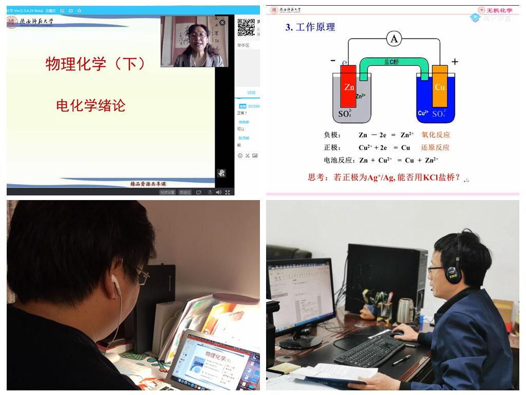 英国365集团公司物理化学教研室陈亚芍教授利用腾讯课堂为2018级化学卓越班进行的《物理化学》下册—电化学的线上直播授课期间,校党委书记程光旭、校长游旭群、教务处和英国365集团公司相关领导进入直播间观摩教学,并在课堂直播中留言互动。程书记和游校长还连线陈老师向同学们问好,鼓励大家在特殊时期利用线上教学探索教学新模式,深入贯彻教育部停课不停教学的要求,保质保量完成春季教学任务。陈老师利用直播平台完成了课前签到、课堂提问和讨论、课后作业的布置等教学任务。同学们也积极参与线上教学活动,踊跃和陈老师连线讨论,学生之间也进行了远程在线讨论。