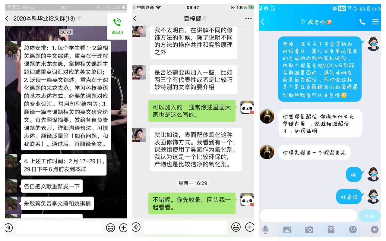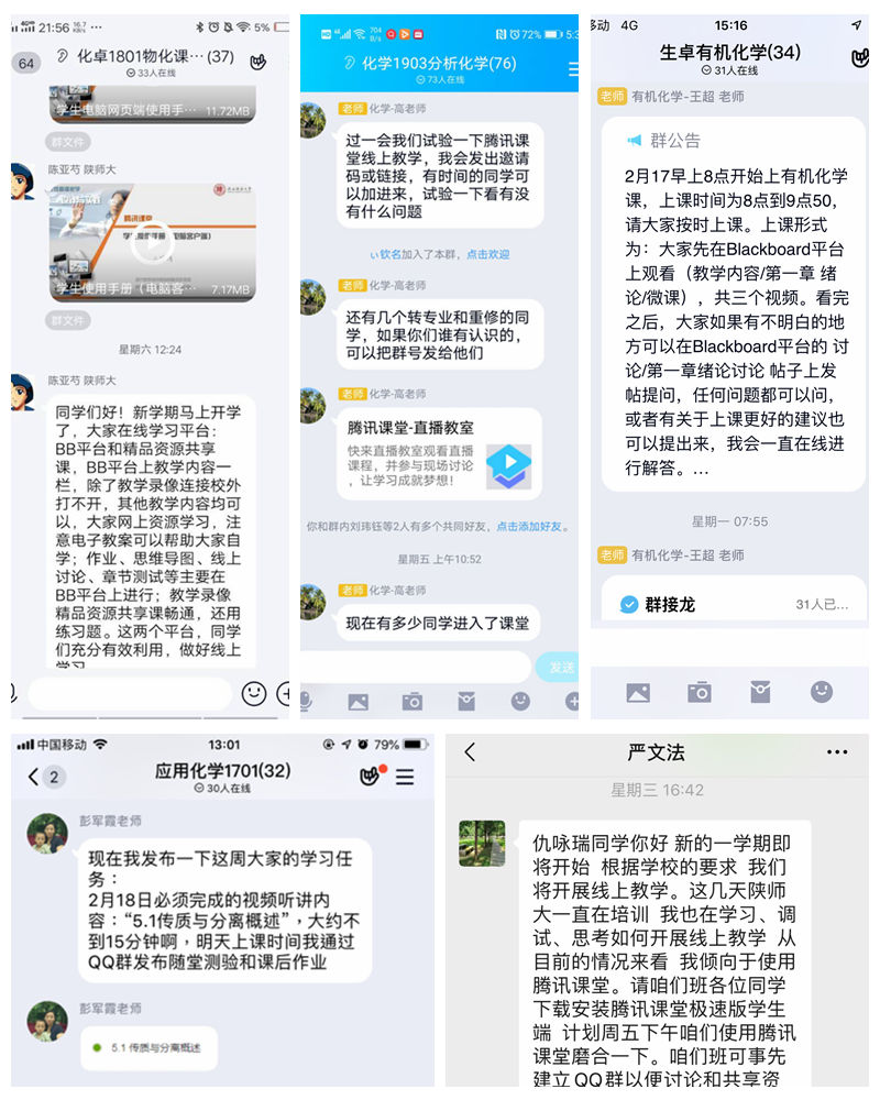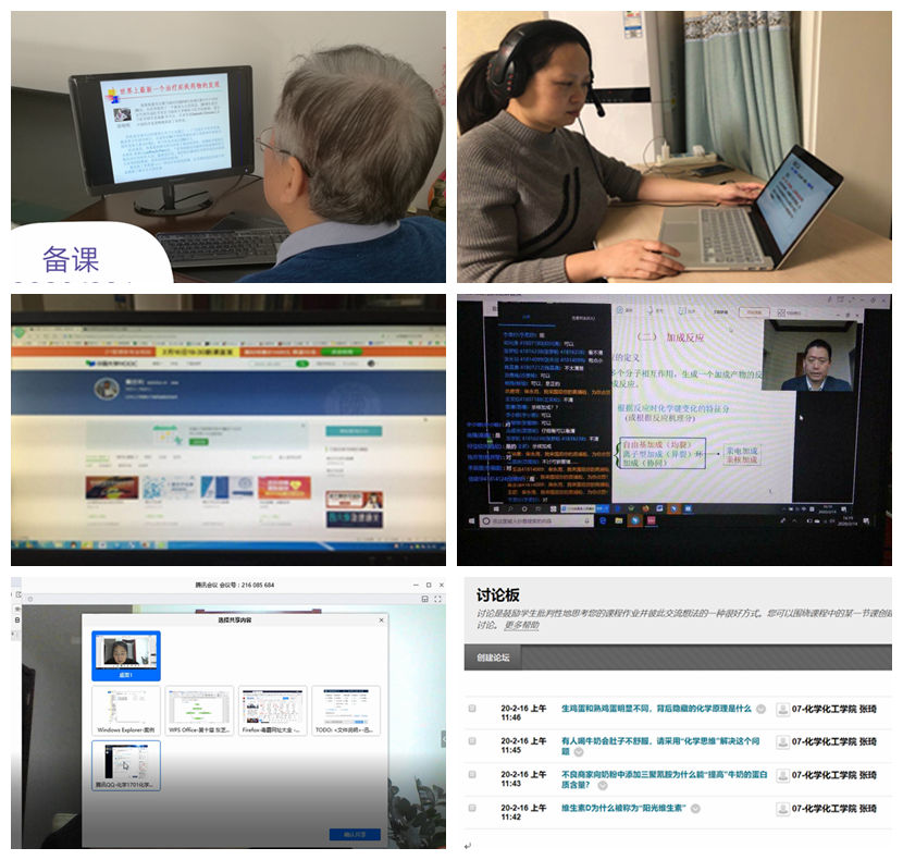 应用化学教研室积极响应教育部“停课不停学”的号召,成立线上课程筹备组,集体备课,录制视频;课前提前布置预习和学习任务;课堂在线讲解,及时测试答疑;此外,还关注学生的思想健康问题,引导学生思考如何从疫情和灾难中成长起来将自己锤炼成学生满意的人民教师。