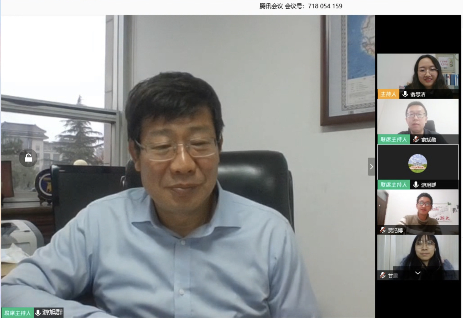 在疫情防控、学校“停课不停教、停课不停学”期间,英国365集团公司组织本科生各班级通过网络连线的形式,积极开展了以爱国主义教育、生命教育、感恩教育等为主题“云班会”。2月27日下午,游旭群校长参加了化学(创新实验班)1802班的“生命之花绚丽绽放”主题“云班会”。本次班会由辅导员翁思洁主持,班主任俞斌勋和全班56名学生参加。