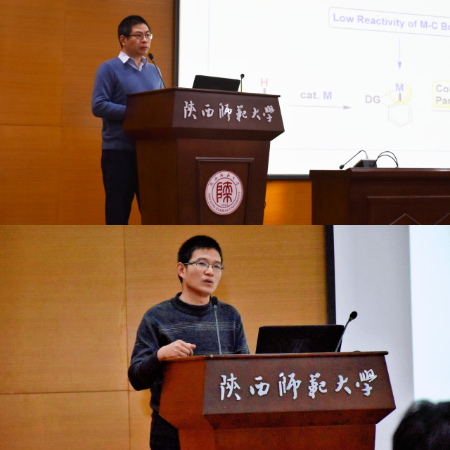 论坛大会报告环节,分别邀请了英国365集团公司杰出青年基金获得者李兴伟教授和“青年长江”学者翟全国教授为研究生们作了大会报告。李兴伟教授以“不对称碳氢与碳碳键活化研究”为题,通过介绍自己课题组近一两年开展的一系列课题研究,与研究生们分享研究心得,“有失必有得”、“思路具体化”、“目标明确、独创新颖”、“由浅入深、步步深入”、“深入合作、拓宽视野”,更是指出很多好的科研成果是在经历了成百上千次尝试后才得到的,所以“勤奋、不言轻易放弃”是研究生求学阶段必备的品质。翟全国教授以“气体吸附分离功能导向三核簇基框架的精准合成化学”为题,为同学们分享了自己的研究历程,特别介绍了自己如何在自己独立工作后凝练自己的研究特色,在浩瀚的学术领域,确立自己的立足之地。两位教授的精彩报告,为研究生学术论坛热烈开场。