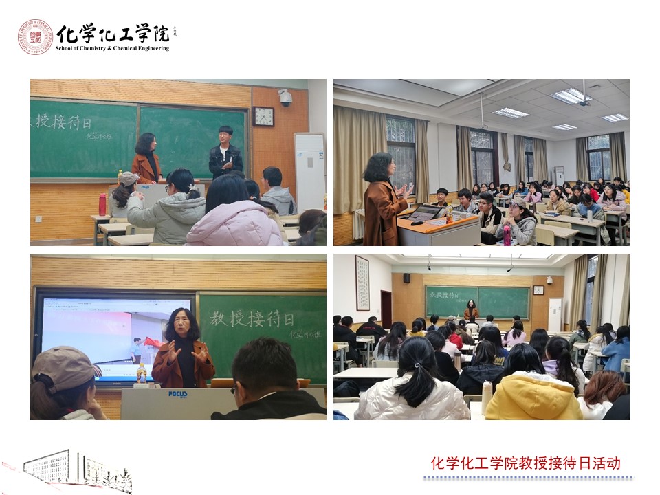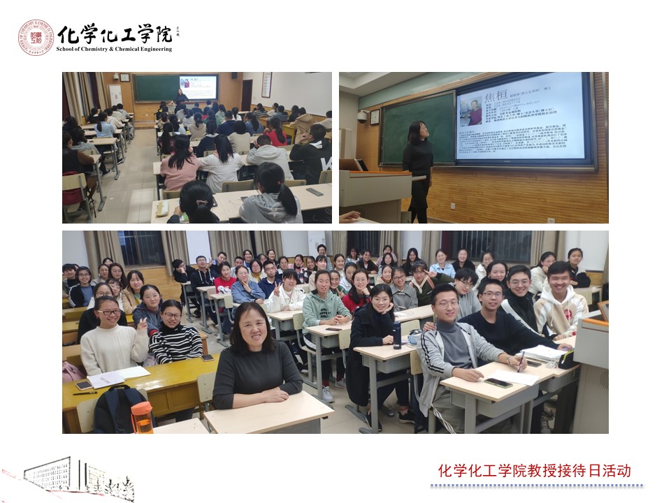 11月7日,化学类1901班邀请焦桓教授进行“教授接待日”活动。焦教授围绕“你心中的大学”这一主题与同学们展开亲切的交谈,她表示大学生应学会独立思考、坚持学用结合。同时,就同学们各项能力的全面发展提出个人建议,一是善于获取信息,学会有效沟通;二是善于发掘兴趣,发展技能水平;三是善于展示自我,锻炼强大内心。通过焦教授的耐心解答,同学们受益匪浅,对今后的学习生活有了更清晰的目标,活动在热烈的掌声中落下帷幕。