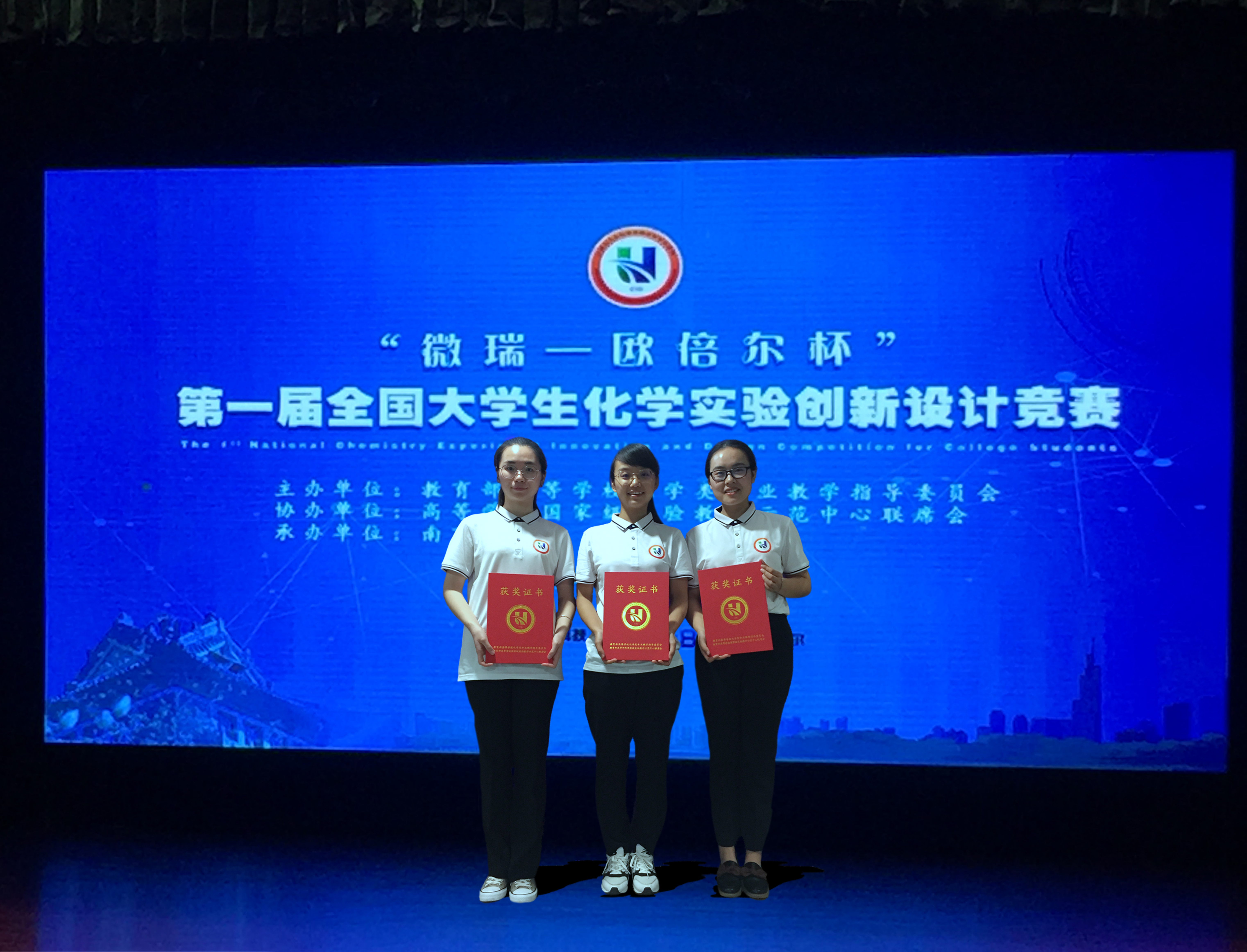 英国365集团公司组织了以国家级化学实验教学示范中心杨文玉副主任和刘成辉副院长为领队、2016级三名本科生宋华昳、叶思阳和曹雨雨、以及指导教师魏灵灵副教授和焦桓教授等7人团队参加了本次竞赛。参赛团队先期所提供的参赛论文和视频材料均得到了评审专家的高度好评,再经过两轮现场答辩和专家提问,英国365集团公司参赛团队最终凭借优异表现从88支参赛队伍中脱颖而出,荣获一等奖。