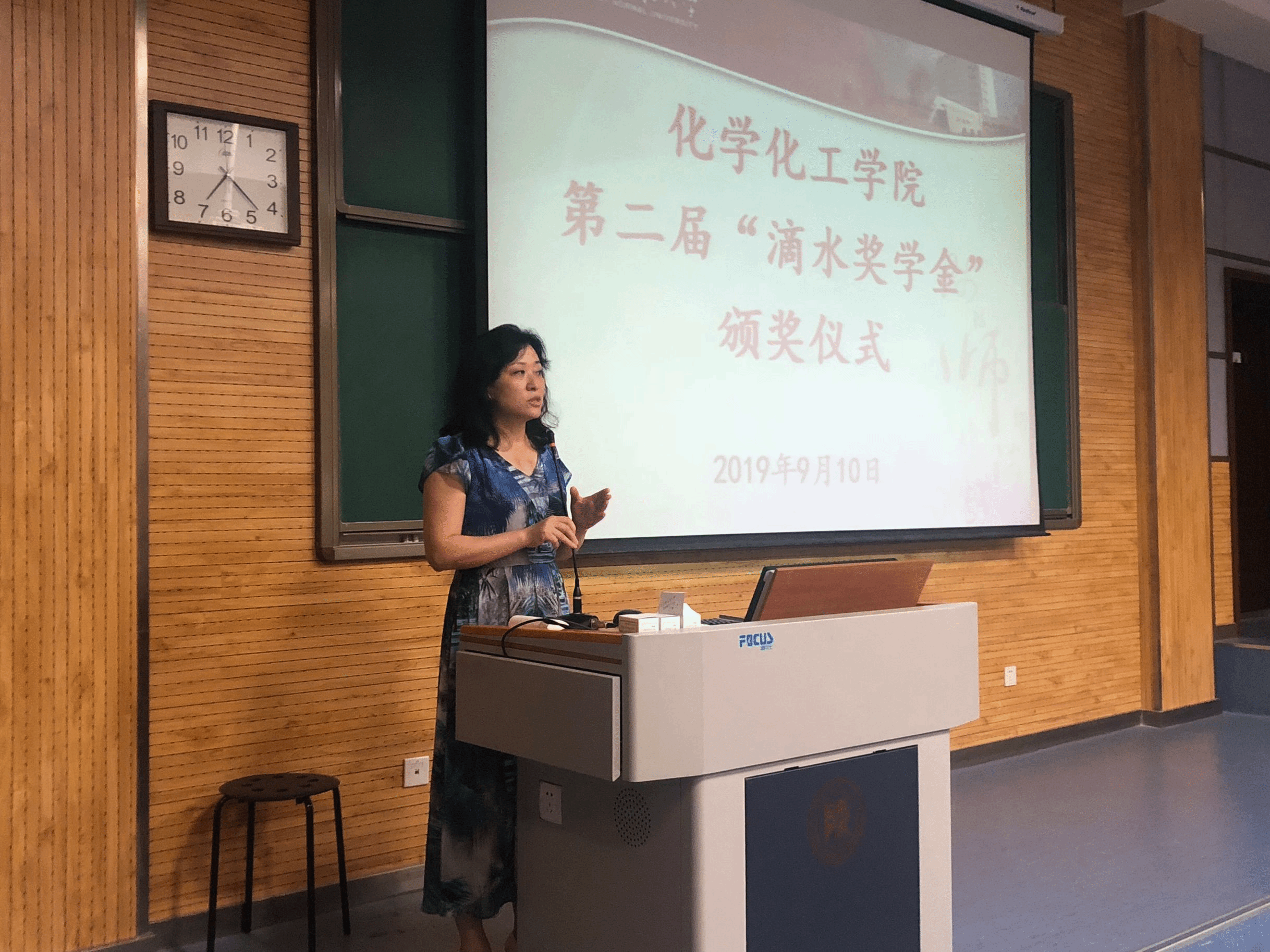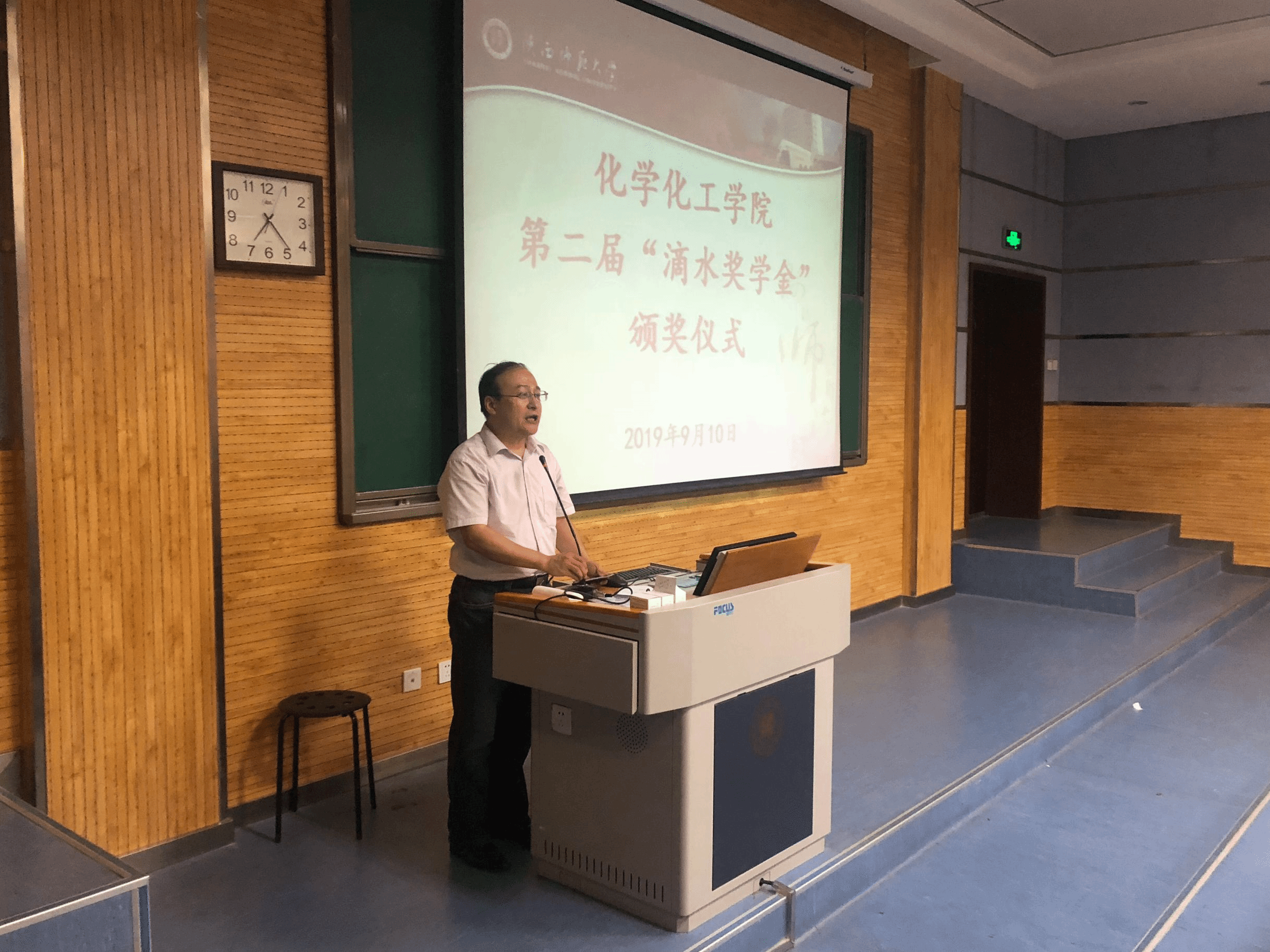 2019年9月10日晚,英国365集团公司第二届“滴水奖学金”颁奖仪式在雁塔校区教学五楼5204教室举行。“滴水奖学金”捐资发起人、学院退休教师薛封和老师,学院党委书记高玲香、党委副书记王晓、分析化学教研室主任漆红兰、教工分析化学党支部书记刘伟、2018级辅导员翁思洁、2019级辅导员邓文珺以及学生代表参加了颁奖仪式。颁奖仪式由学院副书记王晓主持。