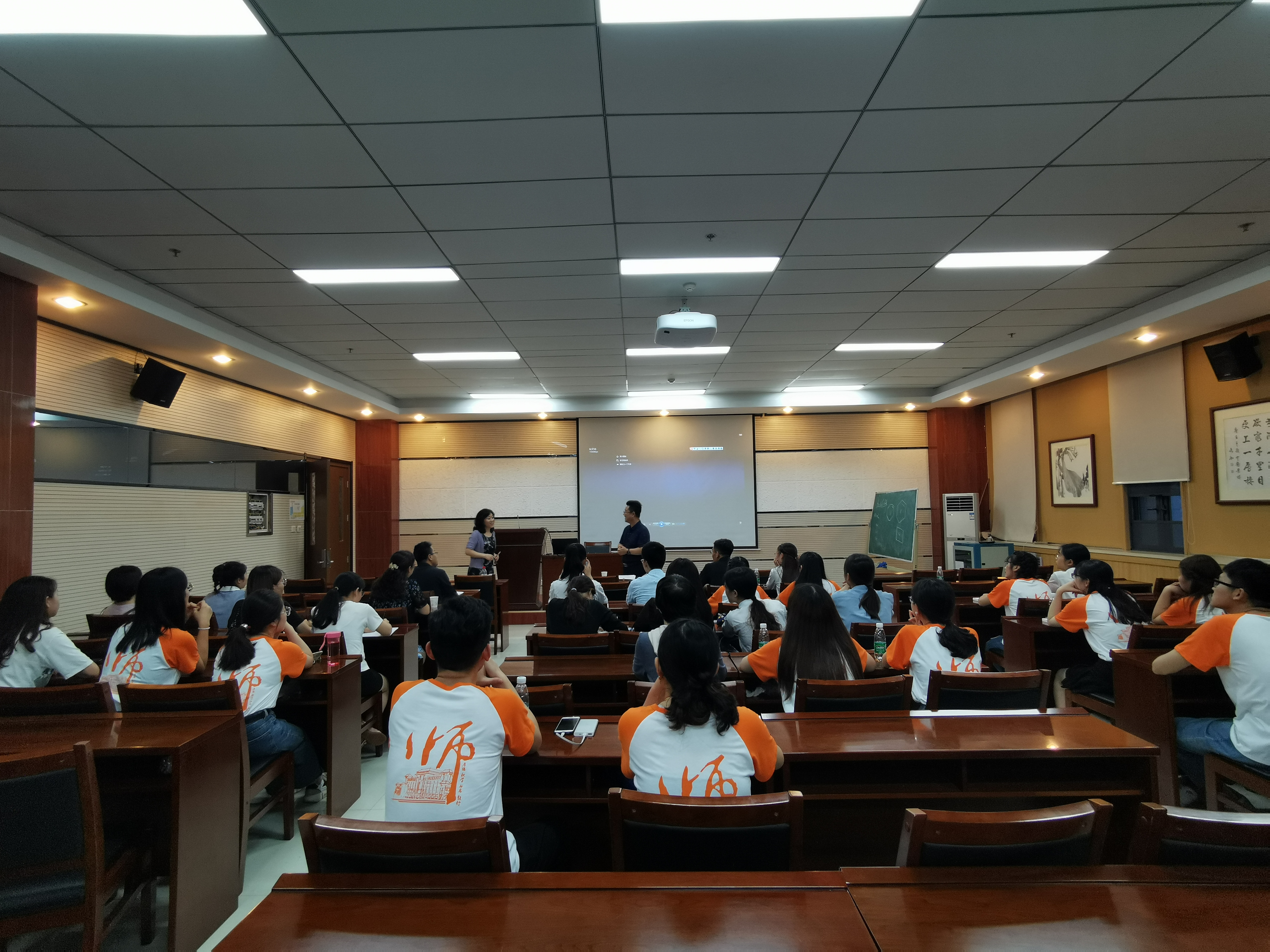 紧接着,樊校长给同学们提出了一些职业能力发展的建议。教师要对职业充满激情与热情,爱岗敬业,平等对待每一位学生,具备幽默感,让课堂生动。多阅读,常反思总结,对自己人生做出规划,并且要苦练基本功,钻研教材,为成为卓越教师夯实基础。樊校长还以多年的工作经历,为同学们讲述了一个个鲜活的案例,让同学们受益匪浅。
