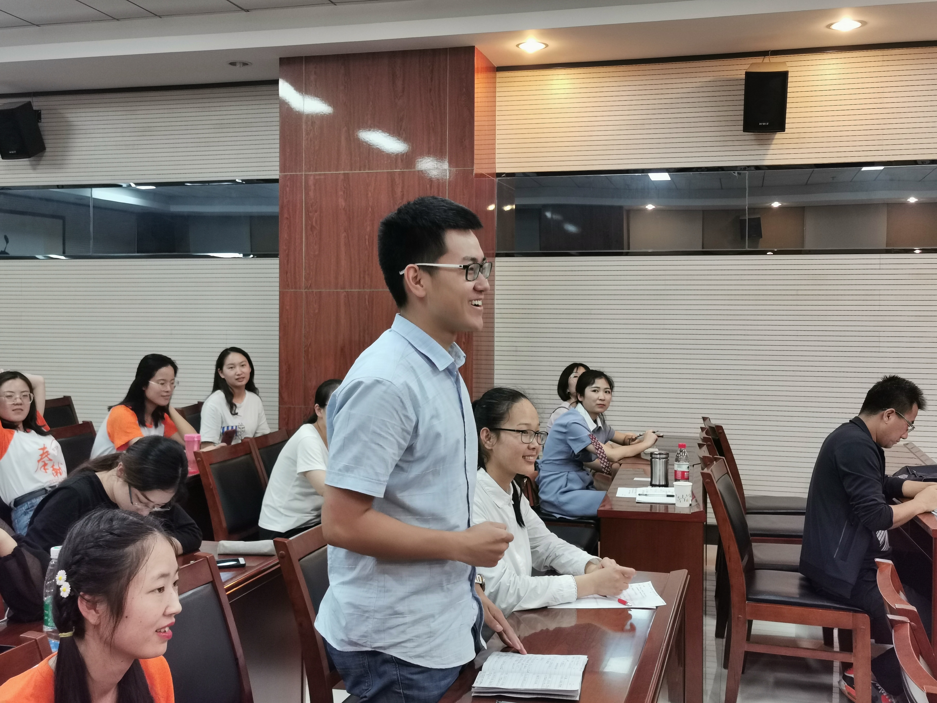 讲座伊始,樊校长提出了新入职老师面对学生、同事和领导要进行角色的转换。一是要充满信心,尝试着去了解学生的想法,价值观和行为方式,走近学生,采取合理有效的方式去关心爱护学生,让学生能够感受到教师的爱,进而尊重老师。要上好第一堂课,在班级中树立威信。面对同事,要虚心,积极听取他人的建议,提高自己。善于与同事合作,互相尊重,共同促进。二是要充满爱心,只有爱学生,才能做好教学。三是要具备耐心,教师工作的特殊性决定了教师要用自己的耐心去培养学生。