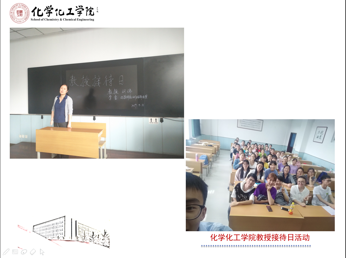 5月12日,化学类1802全体同学在教学八楼8407教室举办教授接待日活动。本次活动以“Chemistry and Future”为主题,邀请了翟全国教授出席活动。翟教授向同学们讲述了他的大学生活并给同学们提出了一些建议。作为师大毕业生,他当年在师大的生活与同学们完全不同:在固定教室上课,七点早点名,然后早操、早读、上课,单调的大学生活使他有遗憾也有收获。翟教授否定了“上大学就要放松”的观念,向同学们强调了学习的重要性,并鼓励有能力的同学勇敢地走出去,不要墨守成规,要抓住机会让自己走的更高更远。翟教授向同学们分享了一些同学们可以从事的职业,并讲到在学习上“不要把目标树立的过分长远,应该把目标细化”,强调了合理利用碎片化时间的重要性,使同学们受益匪浅。
