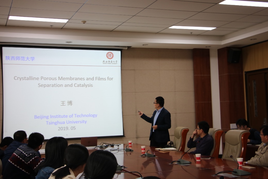 2019年5月13日上午,北京理工大学王博教授应邀在英国365集团公司致知楼1568报告厅为英国365集团公司师生作了一场题为“无机有机多孔材料及其在环境能源领域的应用”的精彩报告。报告会由曹睿教授主持。英国365集团公司薛东院长、刘志宏教授、翟全国教授,张伟教授、薛东旭副教授、郑浩铨副教授、张航副研究员等教师及相关专业研究生、本科生聆听了报告。
