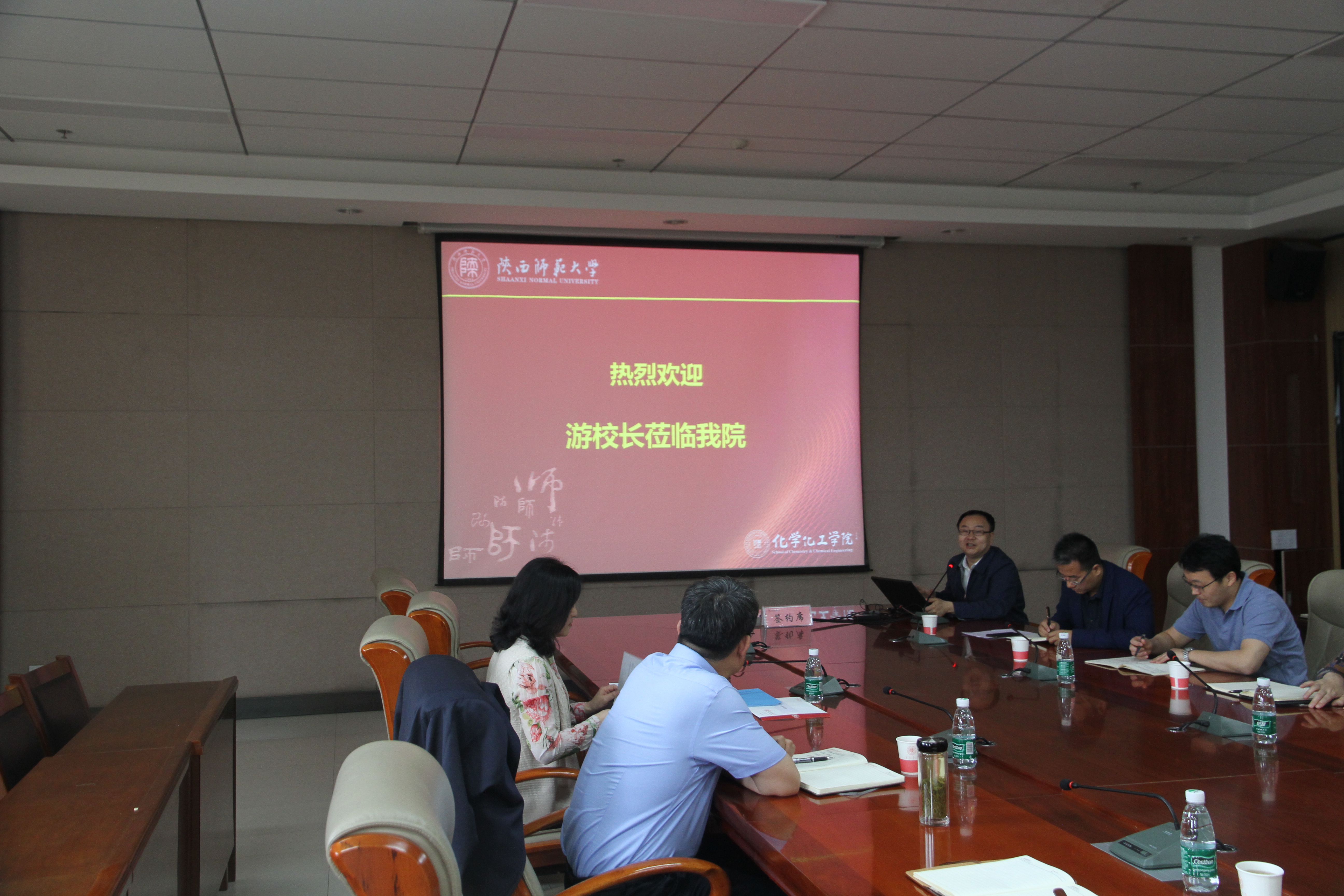 游旭群校长谈到化学是学校的一个优势特色专业,化学学科底蕴深厚,学院师资队伍强大,平台高端,成果卓著,英国365集团公司为学校的学科建设和发展做出了重要的贡献,为学校赢得了良好的社会声誉,内心对化学学科和化学人充满了尊重和敬意。他指出薛东院长的汇报“定位精准”,给他留下了非常深刻的印象,学院未来的发展一定要做“顶天立地”的化学,“顶天”是建设世界一流学科,“立地”是为西部地区培养一流的化学教师。