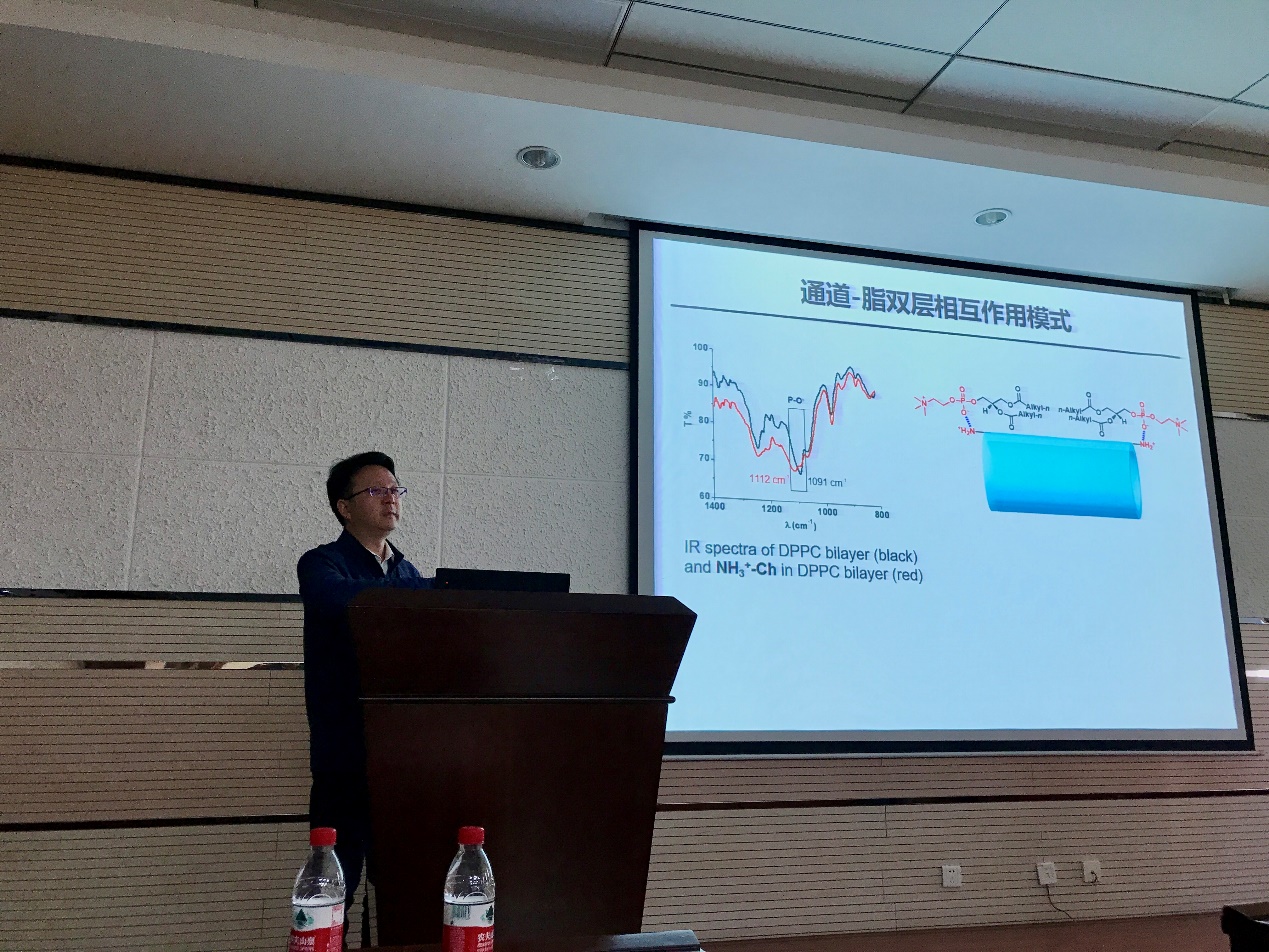 此次报告中,侯军利教授从单分子管人工跨膜通道的输送对象(质子、水、氨基酸和铵离子)、可控性(开关可控和方向可控)及功能应用(抗菌活性和抗肿瘤活性)等三方面展开报告。本次报告展现了候教授课题组近几年的最新进展,取得了一系列具有国内外重要影响的研究成果。丰硕的科研成果和严谨的科研态度,给在座师生留下来深刻的印象。