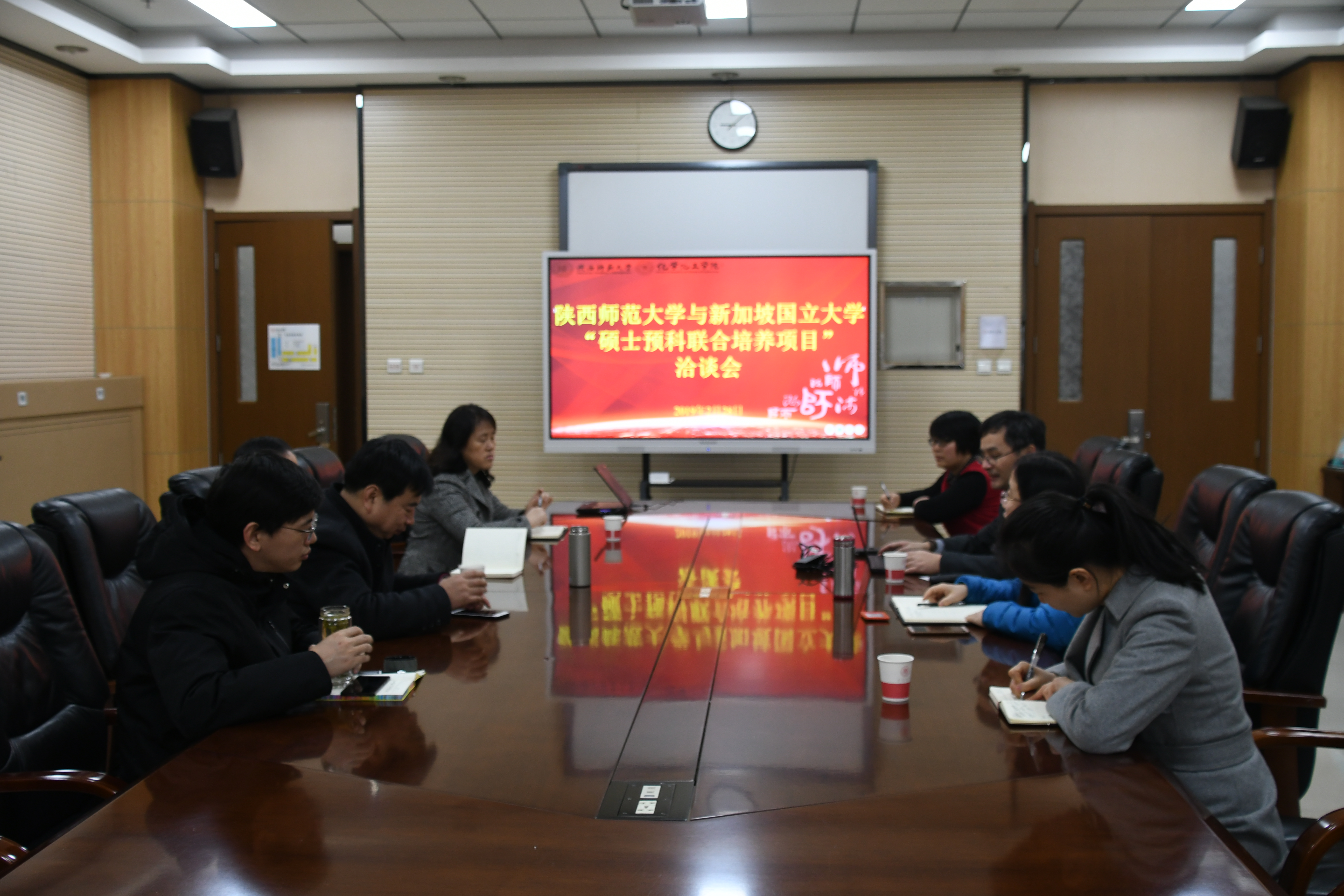 为提升本科生培养质量,丰富培养模式,拓展国际视野,2月28日上午,陕西师范大学与新加坡国立大学 “硕士预科联合培养项目”前期洽谈会在致知楼1362会议室召开。新加坡国立大学徐清华教授,我校教务处石洛祥副处长,国际交流与合作处李娟科长,英国365集团公司薛东院长、丁立平副院长、焦桓副院长、张伟副教授参加了洽谈会。会议由丁立平副院长主持。