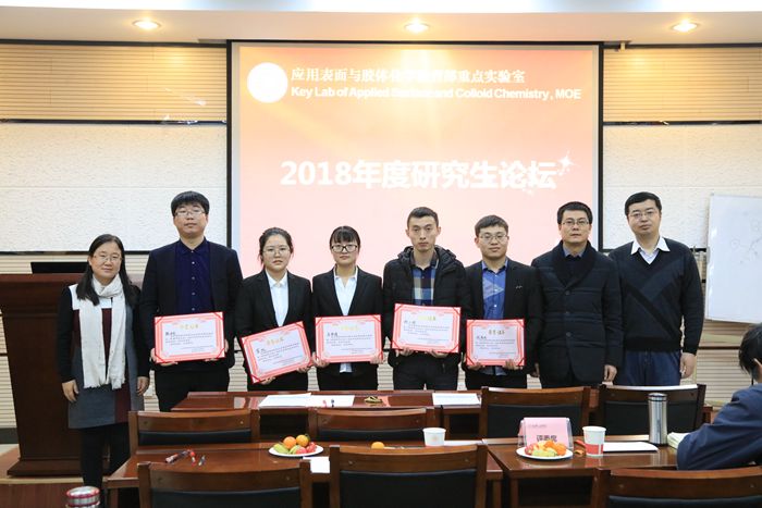 应用表面与胶体化学教育部重点实验室举办的2018年度研究生论坛于2019年1月5日在长安校区致知楼1668/1568会议室成功举行。论坛由重点实验室副主任曹睿主持,张生勇院士、房喻教授、白俊峰教授、张成孝教授、薛东教授、丁立平教授、雷志斌教授、唐艳丽教授、蒋加兴教授、张耀东教授、刘成辉教授等重点实验室150余名师生参加了本次论坛。首先,论坛主持人曹睿介绍了本次论坛的基本情况。他说,研究生论坛是重点实验室重要的例会,本次论坛共有25位博士生参加,其中24位是2017级在读博士生,1位是导师推荐的优秀博士生,论坛报告分为两个会场同时进行。本次论坛邀请了张生勇院士参会并讲话,张院士勉励参会学生珍惜时间,勤勉奋斗,努力实现自己的科研理想,并预祝论坛取得圆满成功。
