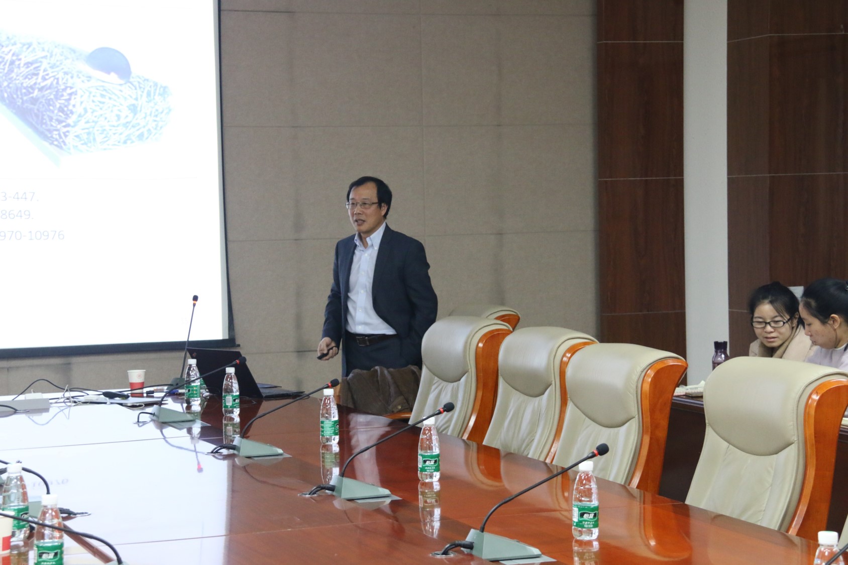 刘国军教授分别介绍了他课题组在嵌段共聚物修饰无纺布水油乳液分离及聚合物双疏涂层的研究进展,并回答了师生感兴趣的问题。以上述两个课题为例,刘国军教授从基本的聚合物设计合成、结构性能研究、应用探索,工业化推进等方面做了详细介绍。刘国军教授还进一步分享了他研究成果产业化转化的经验,极大地激发了广大师生科研的兴趣及自信心。报告会后,英国365集团公司师生就具体问题与刘国军教授进行了深入探讨与交流,使大家受益匪浅。