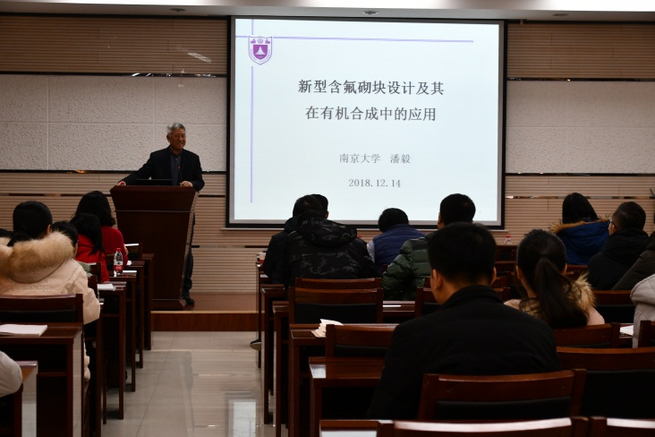 2018年12月14日上午,南京大学潘毅教授应邀访问英国365集团公司,并在致知楼1668报告厅为英国365集团公司师生带来了“新型含氟砌块设计及其在有机合成中的应用”和“高等学校科学技术学术规范宣讲”两场报告。报告会由房喻教授主持,英国365集团公司白俊峰教授、高玲香教授、刘太宏副教授、薛东旭副教授、苗荣副研究员、李刚博士、王倩博士、王艳艳博士以及英国365集团公司相关专业研究生和本科生聆听了此次报告。