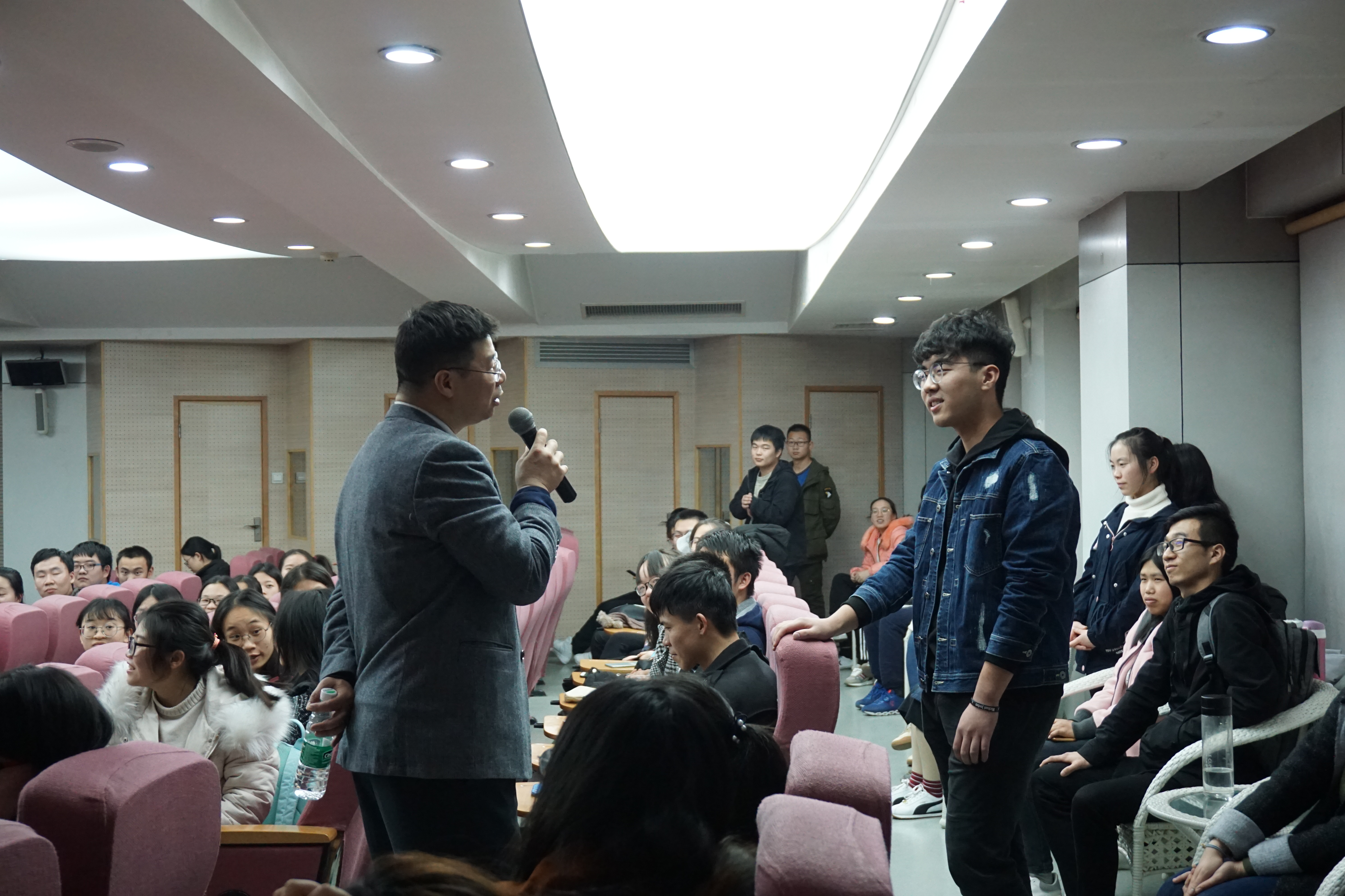 在互动环节,同学们积极提问,黄教授耐心回答了大家关于如何成为一名好老师、如何看待基础科学研究、如何对待考试成绩、如何学习物理化学等方面的问题。
