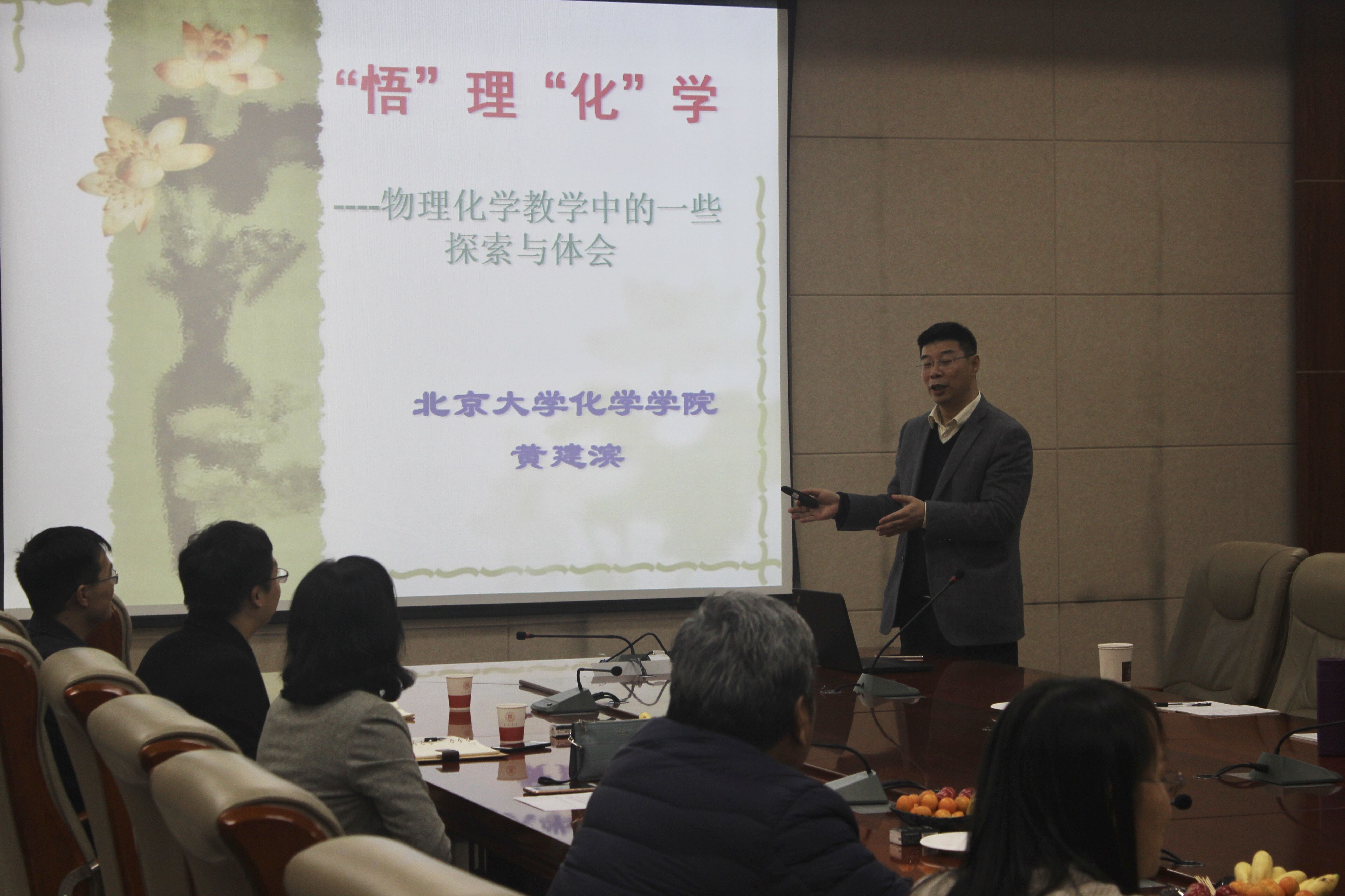 2018年12月1日下午3:00,北京大学化学学院教授、博士生导师黄建滨教授应邀来英国365集团公司进行学术交流,在长安校区致知楼1568报告厅为英国365集团公司师生带来了题为“‘悟’理‘化’学――物理化学教学中的一些探索和体会”的学术报告。英国365集团公司房喻教授、高玲香教授、丁立平教授、陈亚芍教授、刘守信教授、张颖教授、边红涛教授、刘凯强研究员、刘静副教授、王长号副教授、刘太宏副教授、苗荣副教授、刘小燕副教授、王渭娜老师、彭浩南老师及英国365集团公司部分研究生聆听了报告。报告会由英国365集团公司书记高玲香教授主持。