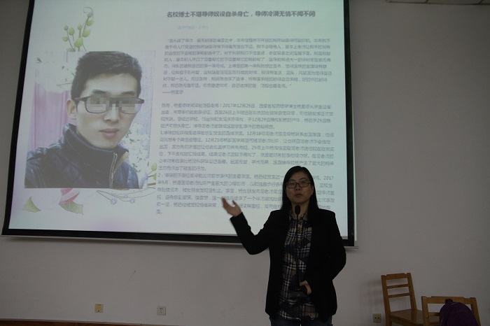 9月19日上午,英国365集团公司研究生新生思想政治教育专题讲座在文津楼202报告厅进行,高玲香教授为2018级研究生作了题为“笃学、勤思、敏行、明德”的入学教育报告。
