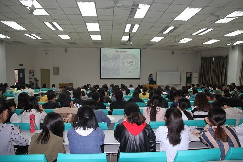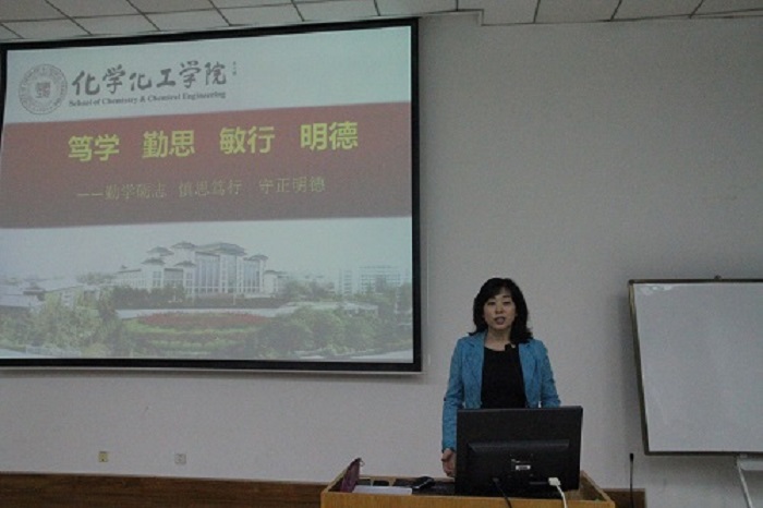实验教学中心主任杨文玉在《化学实验意外事故防范与急救》中重点讲述了第一应急处理的重要性及一系列化学实验中的灼伤情况的防范操作方法。在另一场讲座《化学实验资源的共享与利用》中,杨主任提到大型仪器的规范使用于己于人尤为重要,他鼓励学生积极参加仪器的培训课程,对公共仪器使用要有公德心。