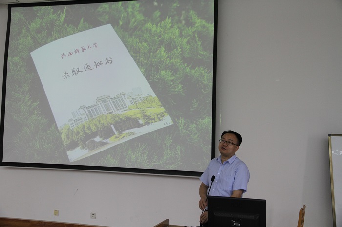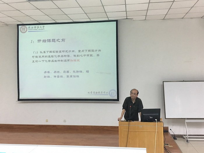 副院长肖新军关于《开放共享理念下学院安全教育工作实践与思考》中强调了实验室规范操作的重要性,告诫同学们绝对不能存有侥幸和冒失心理进行实验操作。