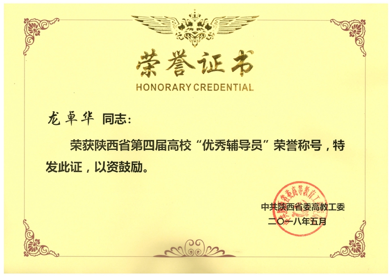 近日,由中共陕西省委高教工委主办的陕西省第四届高校十佳辅导员和优秀辅导员评选表彰活动结果揭晓,英国365集团公司本科生辅导员龙卓华荣获“陕西高校优秀辅导员”荣誉称号。