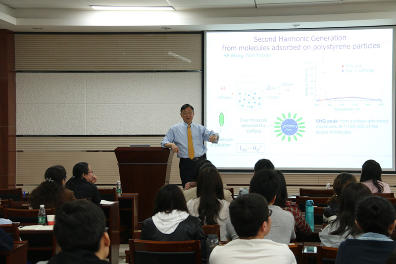 4月18日上午,美国天普大学副校长戴海龙教授应邀访问英国365集团公司,并在致知楼1668报告厅为英国365集团公司师生带来题为“Second Harmonic Light Scattering from Colloidal Objects”的精彩报告。报告由房喻教授主持,学院陈亚芍、丁立平、张颖、杨鹏、边红涛、刘静,刘太宏、彭军霞、彭浩南、王红艳等老师以及和相关专业博士生、硕士生和本科生聆听了本次报告。