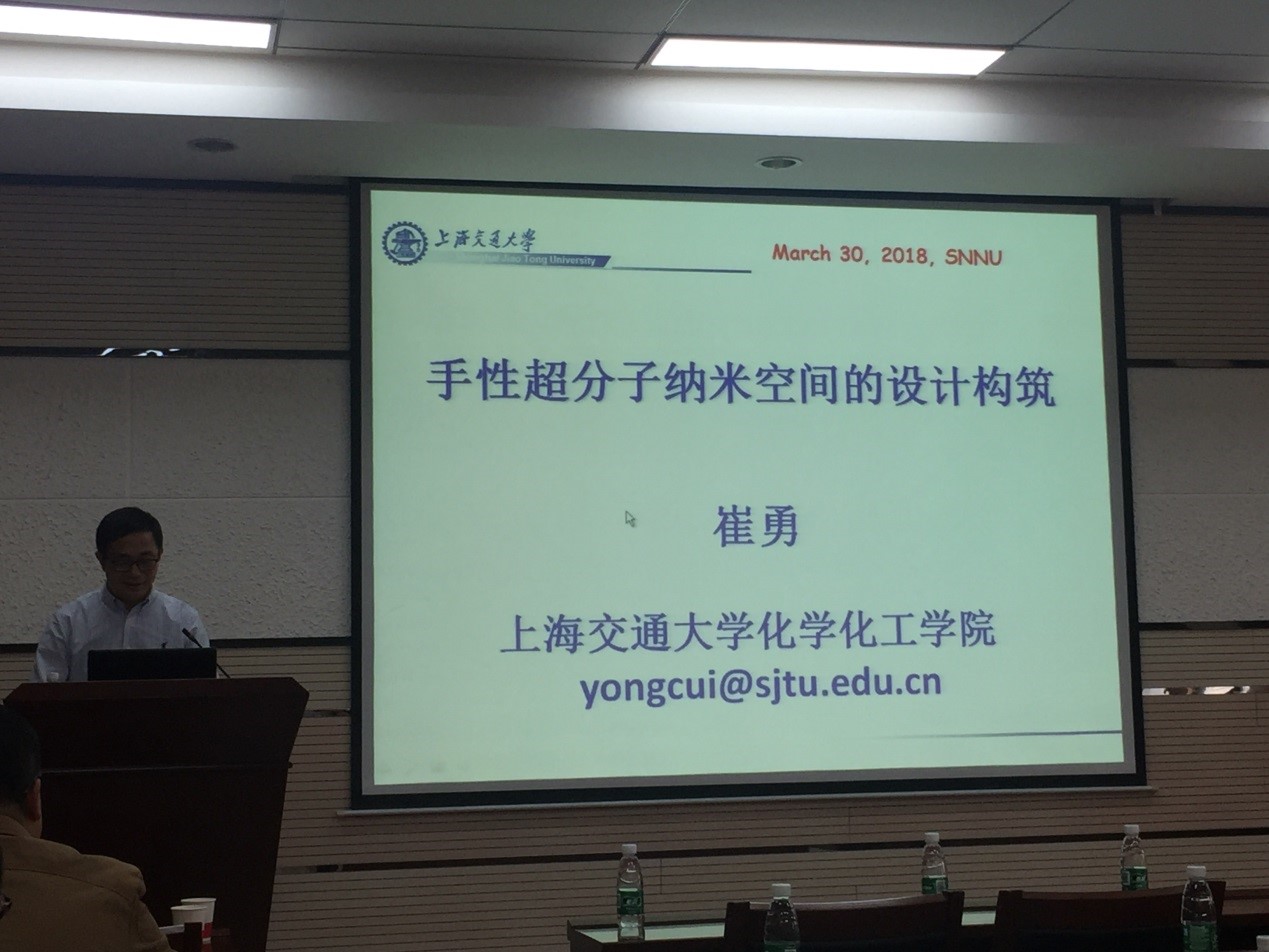 3月30日下午,上海交通大学英国365集团公司教授、国家杰出青年科学基金获得者崔勇教授和中山大学化学学院教授、国家杰出青年科学基金获得者苏成勇教授应邀访问英国365集团公司,并在致知楼1668报告厅为英国365集团公司师生分别带来了题为“手性超分子纳米空间的设计构筑”、“配位超分子工程与材料---笼基金属-有机新材料(MOMs)自组装与性能”的精彩报告。白俊峰教授、焦桓教授、张伟强副教授、薛东旭副教授、赵娜副教授、简亚军副教授、郑浩铨副教授以及相关专业博士生、研究生聆听了此次报告。报告会由白俊峰教授主持。