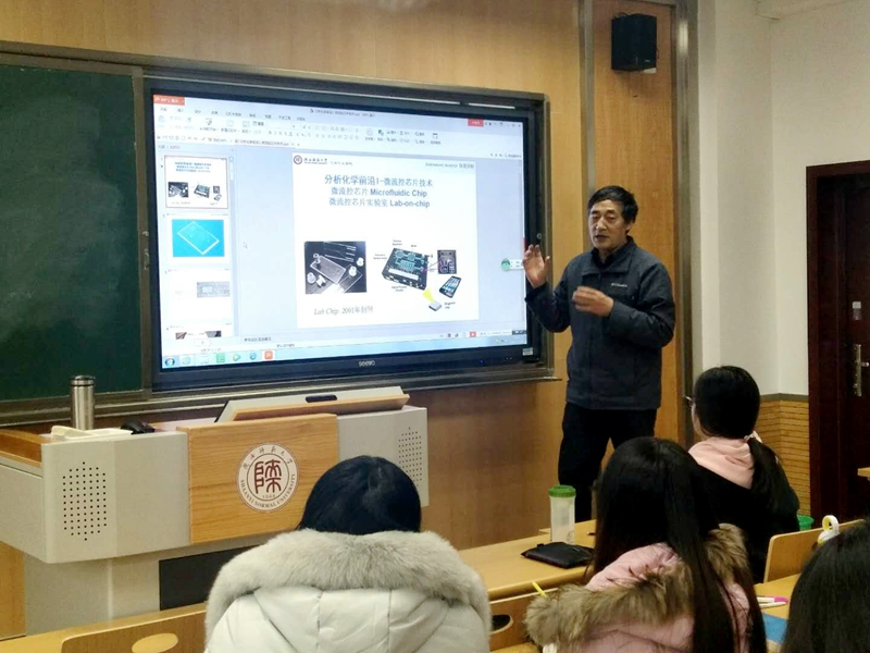 12月29日下午,英国365集团公司张成孝教授为同学们做了一场题为分析化学前沿“微流控芯片技术”和“临床当场即时检测(POCT)”的报告,此次报告还吸引了分析化学专业的部分研究生前来学习。