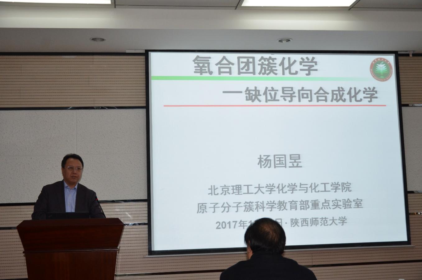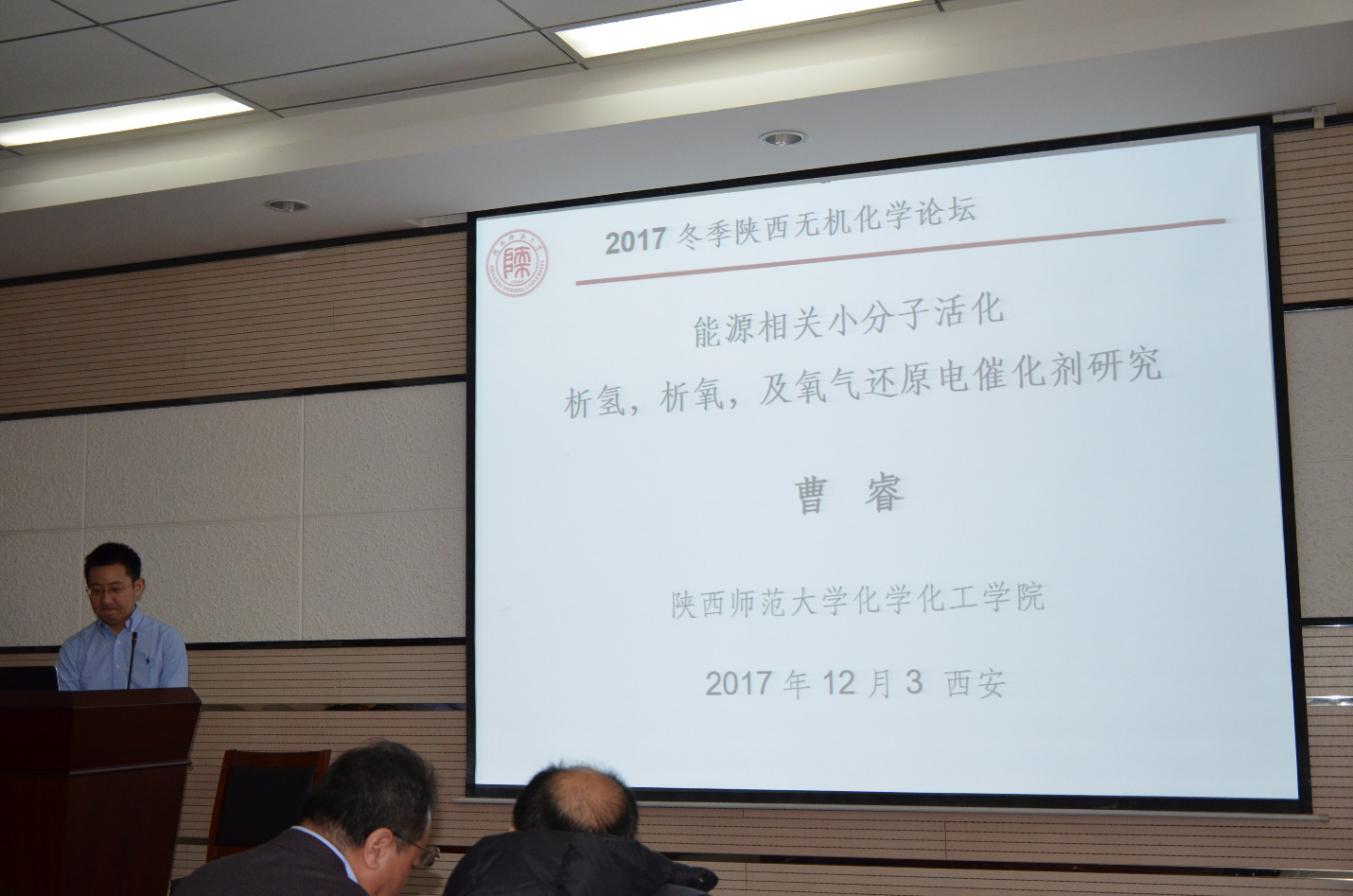 12月3日,2017陕西无机化学研讨会在长安校区致知楼召开。论坛开幕式上,化学会理事长、西北大学副校长王尧宇教授和英国365集团公司书记高玲香教授为此次会议致辞。出席此次会议的专家学者包括西安工程大学副校长樊增禄教授,大连理工大学段春迎教授,北京理工大学杨国昱教授,西安交通大学延卫教授,陕西师范大学副校长高子伟教授、白俊峰教授、曹睿教授、英国365集团公司副院长焦桓教授和无机化学学科的全体教师。来自北京理工大学、西安交通大学、大连理工大学、陕西师范大学、西北大学、西安工程大学等高校的专家学者、博士生、硕士生共计50多人参加了此次研讨会。上午的学术研讨会上,段春迎、杨国昱、曹睿和延卫四位教授,分别以金属有机限域体系的可控构筑与超分子催化、缺位导向合成化学、能源相关小分子活化及一维无机纳米材料的制备及性能为题,做了精彩的学术报告。