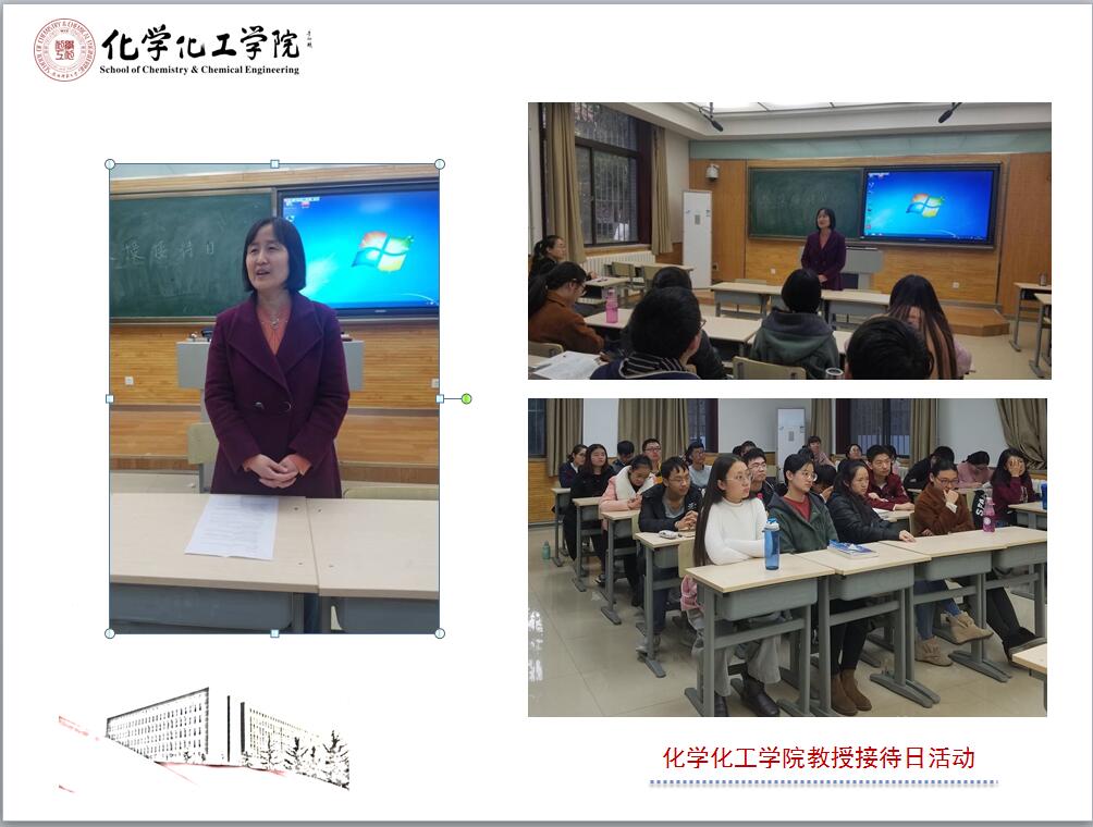 11月24日下午,柴永海教授应邀参加了2016级化学创新实验班的教授接待日活动。活动伊始,柴老师亲切地与同学们交谈。面对同学们提出的“本科专业学习方法”的问题,柴老师结合自身求学历程,阐明了自己对学习的认识并介绍了相应的学习方法。最后,同学们用热烈的掌声表明自己对柴教授的感谢。
