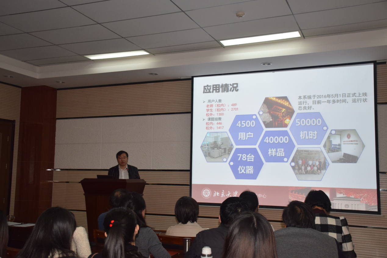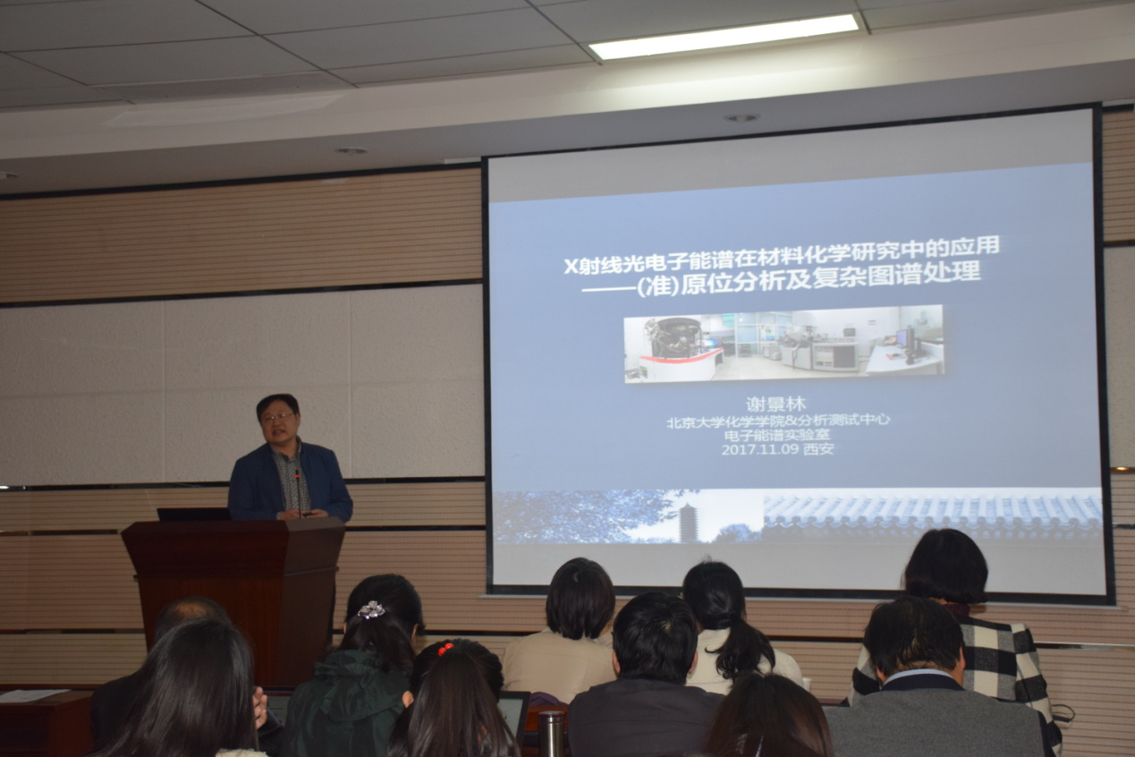 2017年11月10日上午,北京大学谢景林教授、周江教授、扶晖博士、张莉博士、鞠晶博士应邀访问英国365集团公司,在致知楼1668报告厅分别为英国365集团公司师生带来了题为“XPS在化学研究中的应用”、“固体核磁应用简介”、“如何得到‘靠谱’的实验数据”、“电镜技术在材料科学中的应用”、“北京大学分析测试中心信息化建设及质谱应用案例”的学术报告。英国365集团公司实验中心办公室主任杨文玉老师、专业实验室严向阳老师、大型仪器管理平台何攀、刘凯强、左萍等老师及部分研究生聆听报告。报告会由焦桓教授主持。