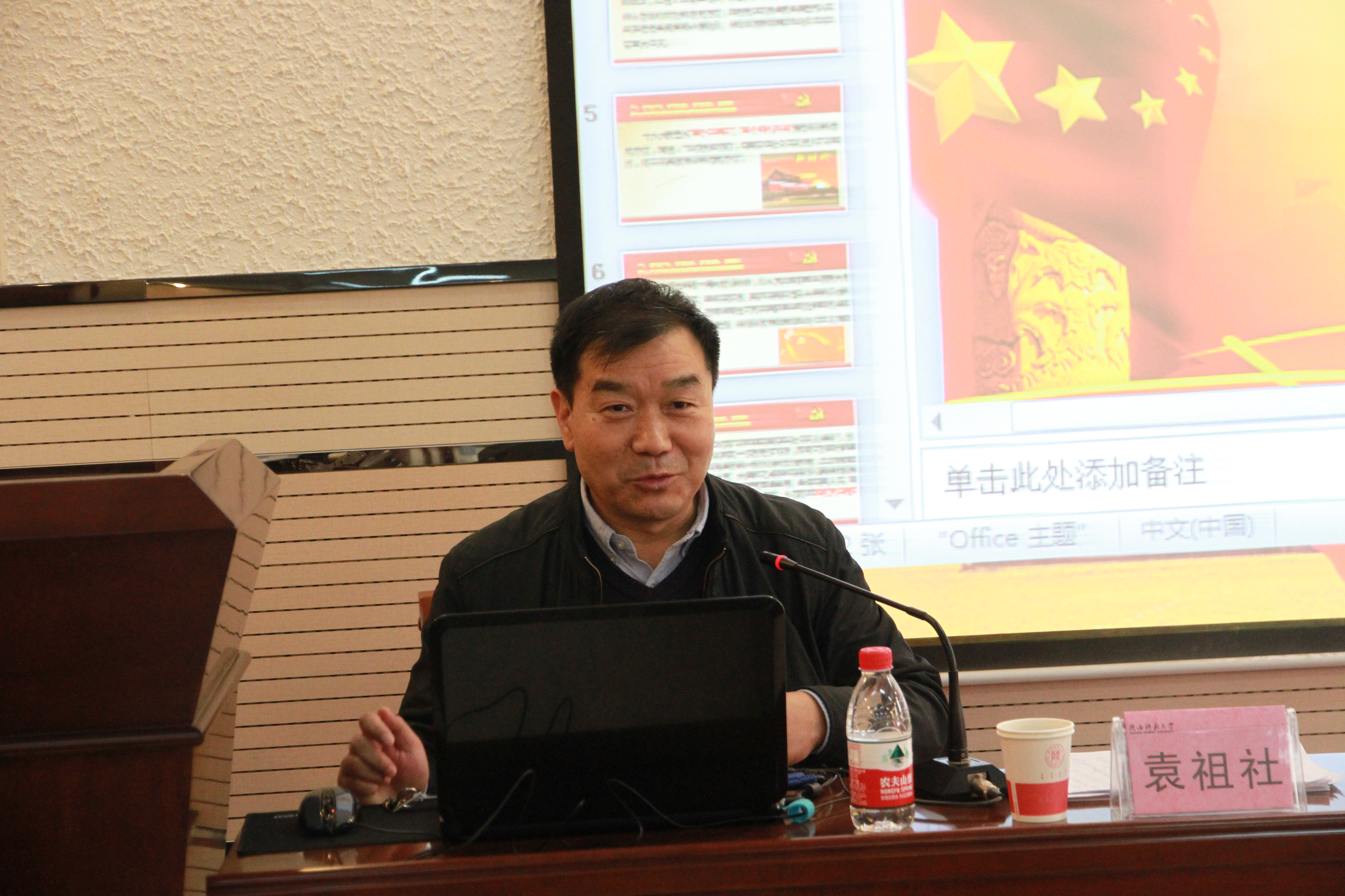 袁祖社教授以“改革优先,发展为本,民生至上----深刻理解十九大报告的精神实质”为题,从中国共产党执政的合法性谈起,分别从改革、发展、民生三个维度为英国365集团公司师生党员深入解读了中央精神。