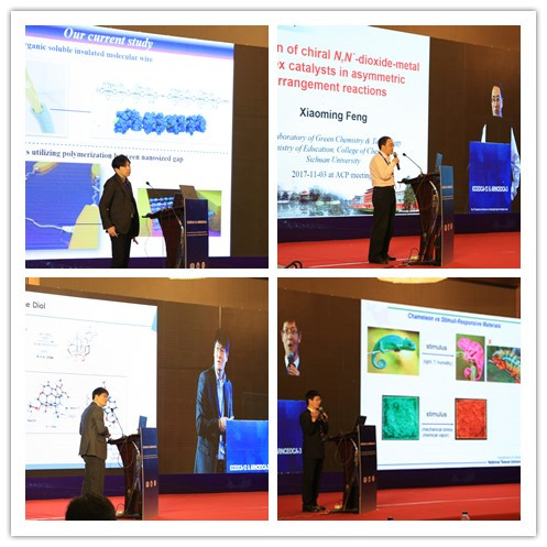 2017年亚洲有机化学前沿国际研讨会共有27个邀请报告,124场一分钟报告和墙报展示。11月3日续开幕式后,大会邀请报告随即在陕西西安曲江国际酒店永宁厅开始,上半场的两场大会报告分别由中科院林国强院士和日本Tohoku大学Yoshiharu Iwabuchi教授主持。中科院丁奎岭院士、日本东京大学Jun Terao教授、四川大学冯小明院士、韩国Chung-Ang大学Kyungsoo Oh教授分别就不对称合成、有机分子材料、脱羧反应等方面作了精彩的报告。
