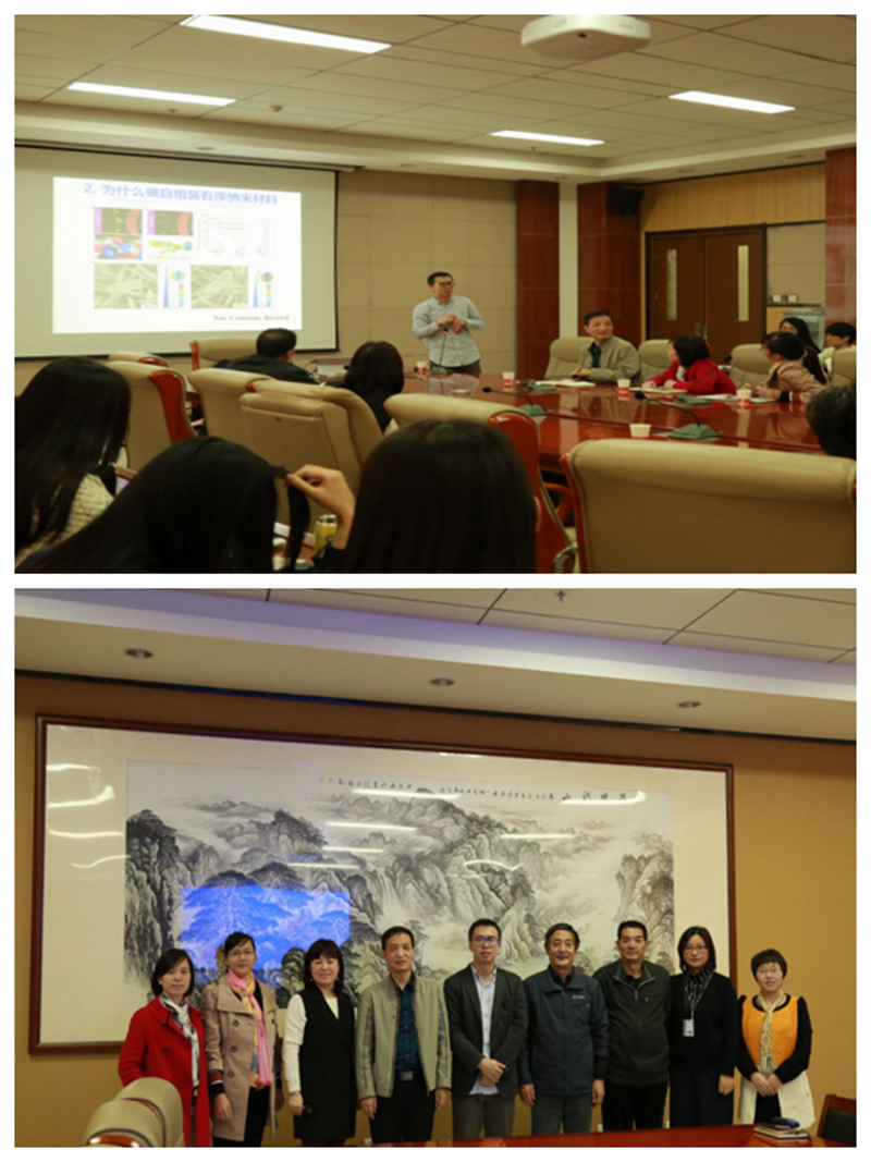 2017年10月20日下午,中国科学院化学研究所王铁研究员应邀访问英国365集团公司,在致知楼1568报告厅为英国365集团公司师生做了题为“纳米自组装有序结构的分析检测”的学术报告,张成孝教授、李保新教授、郑行望教授、唐艳丽教授、漆红兰教授、金燕教授、张静教授、郭志慧教授及相关专业研究生、本科生聆听了报告。报告会由李保新教授主持。