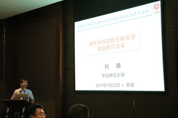 2017年全国高等师范院校化学课程结构与教学改革研讨会期间,共举行7场大会报告,18场邀请报告。7月22日下午在第二分会场,北京师范大学卢忠林教授、湖南师范大学胡瑞祥教授、河北师范大学曾艳丽教授、华中师范大学原弘教授、东北师范大学孙文东教授、西南大学李念兵教授、西北师范大学杨志旺教授、华东师范大学刘璐教授以及我校英国365集团公司张尊听教授等9位专家学者分别给参会的听众带来了精彩的报告。