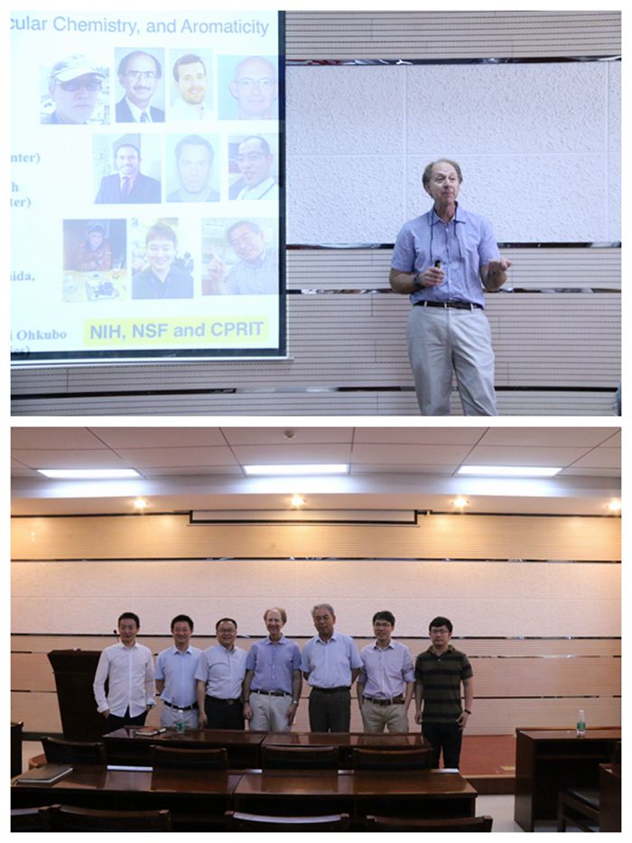 2017年5月27日上午,德克萨斯大学奥斯汀分校Jonathan L. Sessler教授应邀在英国365集团公司致知楼1668报告厅为英国365集团公司师生作了一场题为“Expanded Porphyrins: A personal Journey”的精彩报告。报告会由曹睿教授主持。英国365集团公司薛东院长、房喻教授、张伟副教授、郑浩铨副教授等教师及相关专业研究生、本科生聆听了报告。
