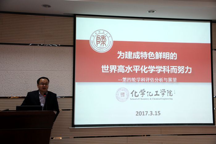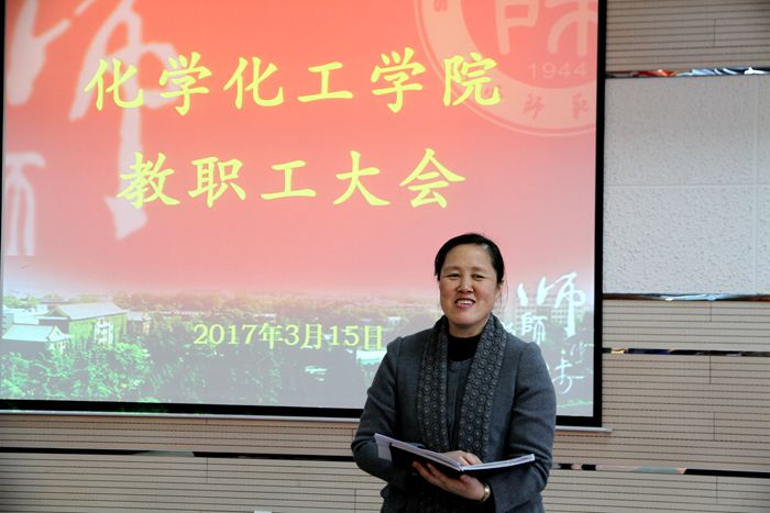 最后,薛东进行总结讲话,对学院本学期重点工作和亟待解决的问题进行了部署。薛东从师资队伍、平台建设、科学研究水平、教师科研水平、学科发展定位等多方面对英国365集团公司现状进行了深刻剖析。他要求全院教职员工以“团结、稳定、追赶、超越”为指导思想,立足西部,放眼全国,以一流高校为目标,撸起袖子加油干,为建成特色鲜明的世界高水平化学学科而努力。薛东提出学院本学期的三项重点工作:一、更加重视人才培养质量提升。把人才培养作为学院的重点工作来抓,加强人才培养质量的管理和培养;二、更加重视人才引进和教师成长工作。既要重视青年人才成长,同时也要重视现有教师的发展,将新教师引进工作和现有教师培养工作同时推进;三、全面提升科学研究成果转化及服务社会的水平和能力。加强学院科研平台的应用化建设,在现有研究的基础上,对可进行转化的项目进行重点孵育,实现产学研结合。