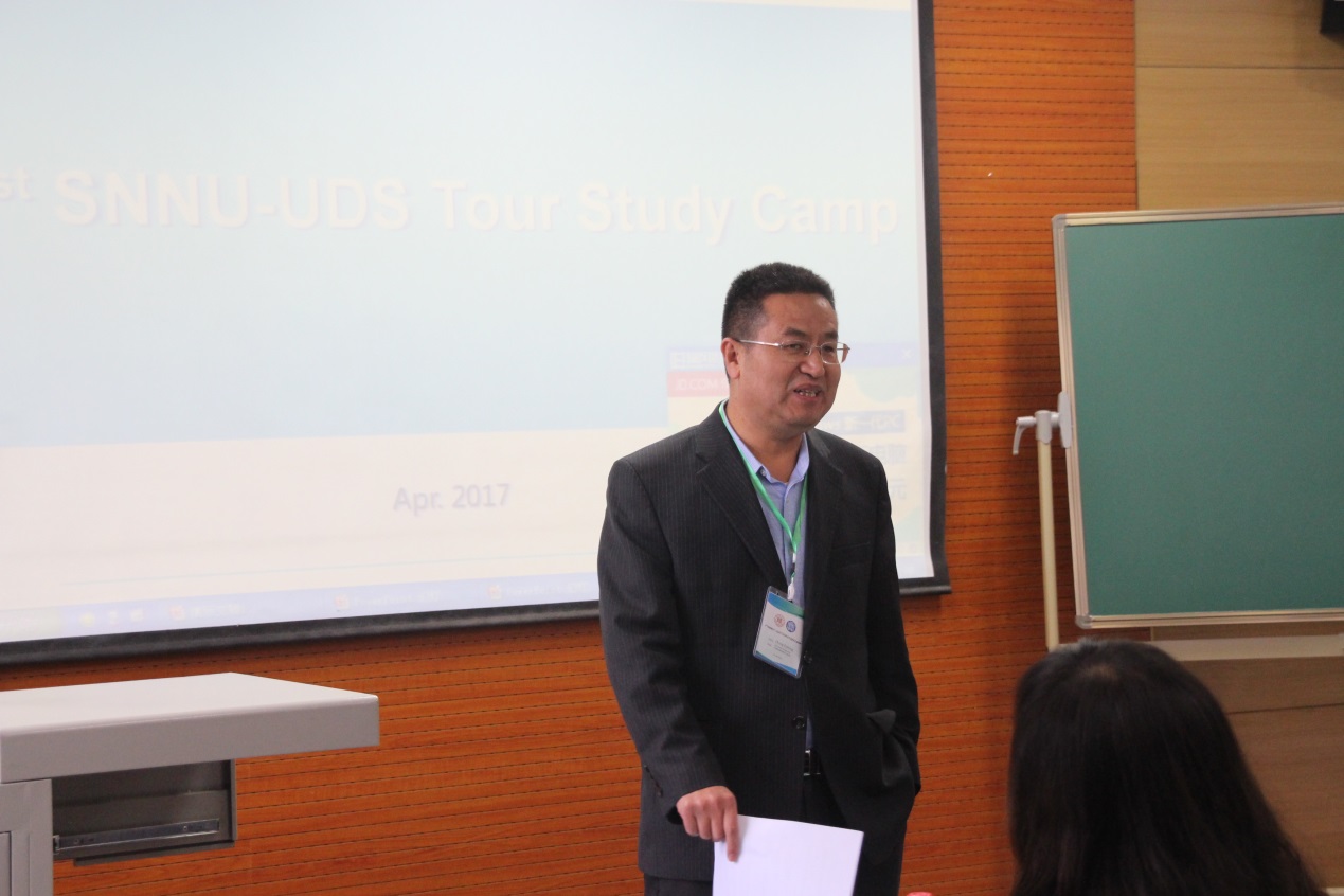 开幕式由尹世伟教授主持,他简单介绍了此次活动的由来和目的。教务处副处长石洛祥教授代表学校致欢迎词,他介绍了陕西师范大学的基本情况和本科生培养基本情况,重点强调了我校近几年与国外部分高校所开展的本科生交流项目,他指出此次“引进来”和以往“走出去”都是我校本科生培养新措施的一部分,希望这种合作能够使我校本科生有机会直接接受国际知名教授的授课,更深入地了解不同国家地域的优秀文化,培养大学生的国际化视野、创新能力及交流能力,从而促进我校卓越人才的培养。
