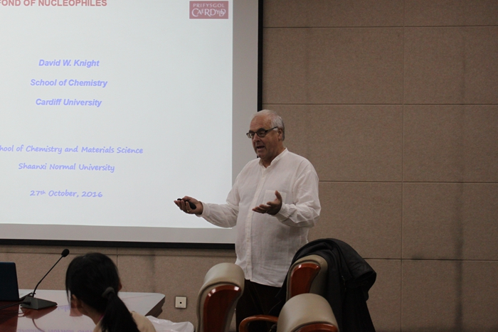 2016年10月27日上午,英国Cardiff大学David W. Knight教授受邀在英国365集团公司致知楼1568报告厅为英国365集团公司师生作了一场题为“Ringing the Changes-making Alkenes and Alkynes fond of Nucleophiles”的精彩报告,报告会由柴永海教授主持,英国365集团公司许春丽教授,李楠副教授,蔡雪刁副教授,王超副教授,任慧芳博士等教师及相关专业研究生、本科生聆听了报告。