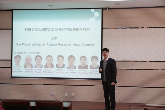 12月24日上午,德国马普所吴思博士受邀在致知楼1668报告厅为英国365集团公司师生作了一场题为“利用钌配合物构筑近红外光响应的纳米材料”的精彩报告,报告会由杨鹏教授主持,西北工业大学田威教授,英国365集团公司江金强教授、刘凯强副研究员等教师及相关专业研究生聆听了报告。