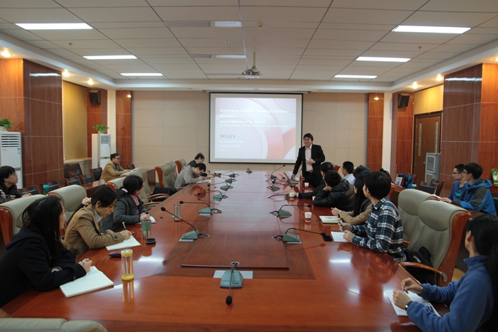 11月19日上午,Wiley出版集团的徐广臣博士来英国365集团公司就科研工作者在研究论文发表过程中的一系列问题作了题为“Wiley材料科学期刊论文发表—如何提高稿件的接受率?”的精彩的报告。报告会由薛东副院长主持,英国365集团公司曹睿,张伟,魏灵灵,丁立平,刘静,彭军霞,陈建刚等老师以及数十名研究生参加了报告会。