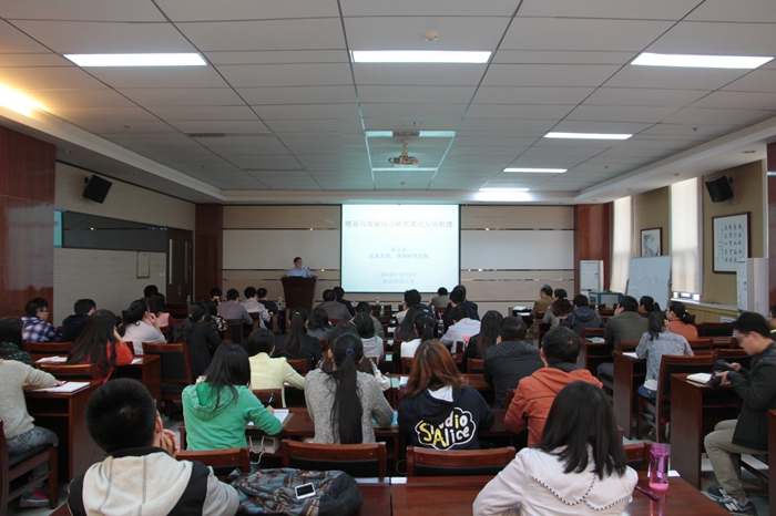 2015年10月8日,中国科学院院士、北京大学吴云东教授在致知楼1668报告厅为英国365集团公司师生作了题为“理论与实验结合研究催化反应机理”的学术报告。学术报告会由房喻教授主持,材料科学与工程学院刘生忠教授、英国365集团公司肖建良教授、刘忠文教授、陈亚芍教授、薛东教授、刘峰毅教授、杨鹏教授、黄治炎副教授、彭军霞副教授、王渭娜讲师、彭浩南讲师等教师和相关专业研究生近100人参加了此次学术报告会。