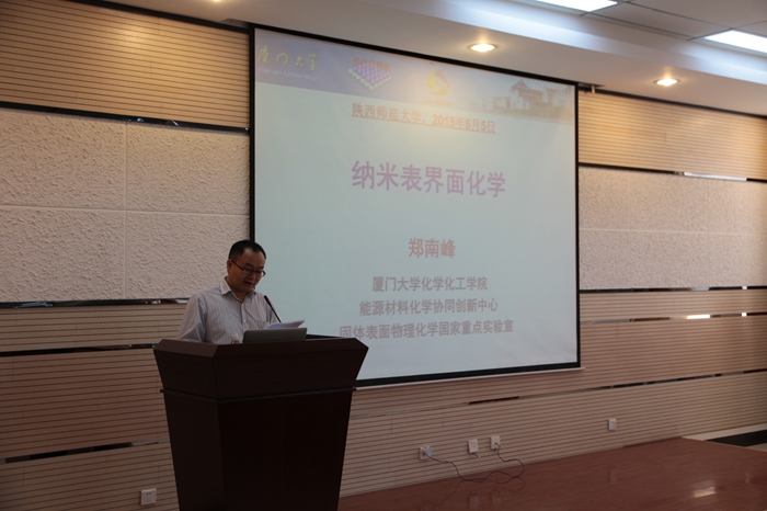 2015年6月4日下午,厦门大学英国365集团公司郑南峰教授、吴德印教授受邀来访我校,并在致知楼1668报告厅分别作了题为“纳米表界面化学”和“表面等离激元增强化学反应”的精彩报告,报告会由学院副院长薛东教授主持,材料科学与工程学院杨合情教授、英国365集团公司刘志宏教授、党福全教授、张静教授、许春丽副教授、李淑妮副教授以及相关专业研究生、本科生聆听了报告。