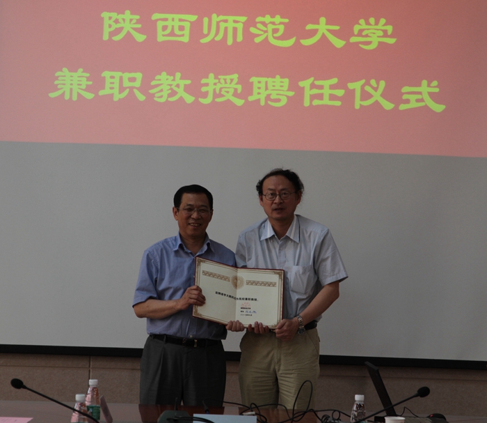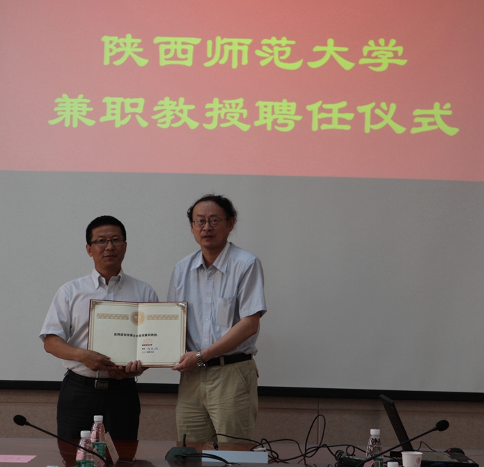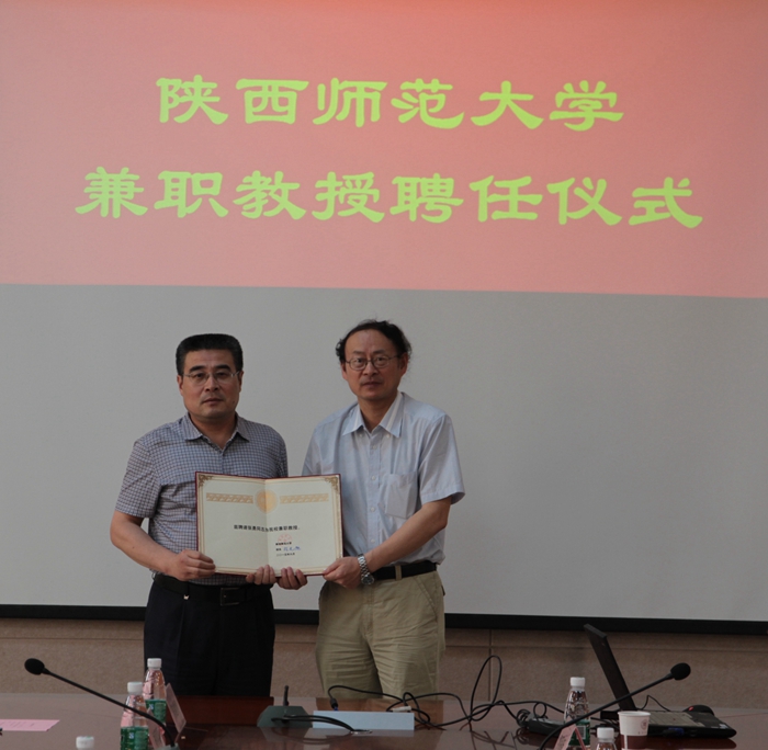 高子伟院长首先介绍了四位兼职教授的主要研究方向、科研成就和学术影响。几位教授多年来主持了多项国家重大项目,在陕西乃至全国化工学界具有较大影响,为我国石油化工事业的发展做出了十分重要的贡献。随后,人事处处长李磊宣读了学校关于对四位兼职教授的聘任决定。程光旭校长代表学校为四位兼职教授颁发了聘书。